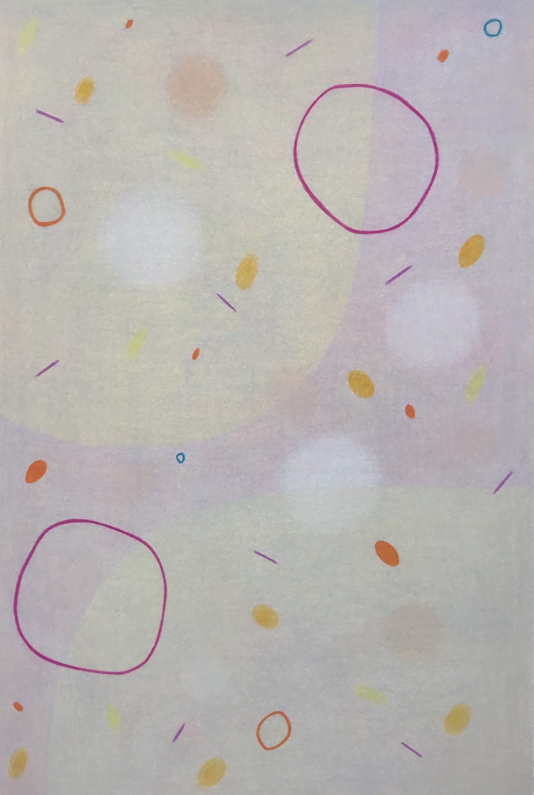 In creating this original drawing (Prismacolor pencil on 185gm Arches 100% cotton paper) Charlotte imagined a spring time garden coming to life with bright pops of colour and blossom. In this work Charlotte continues to play with ideas of transparency and solidity through the layering and blending of creamy, rich hues achieving a sense of luminosity and equilibrium.
