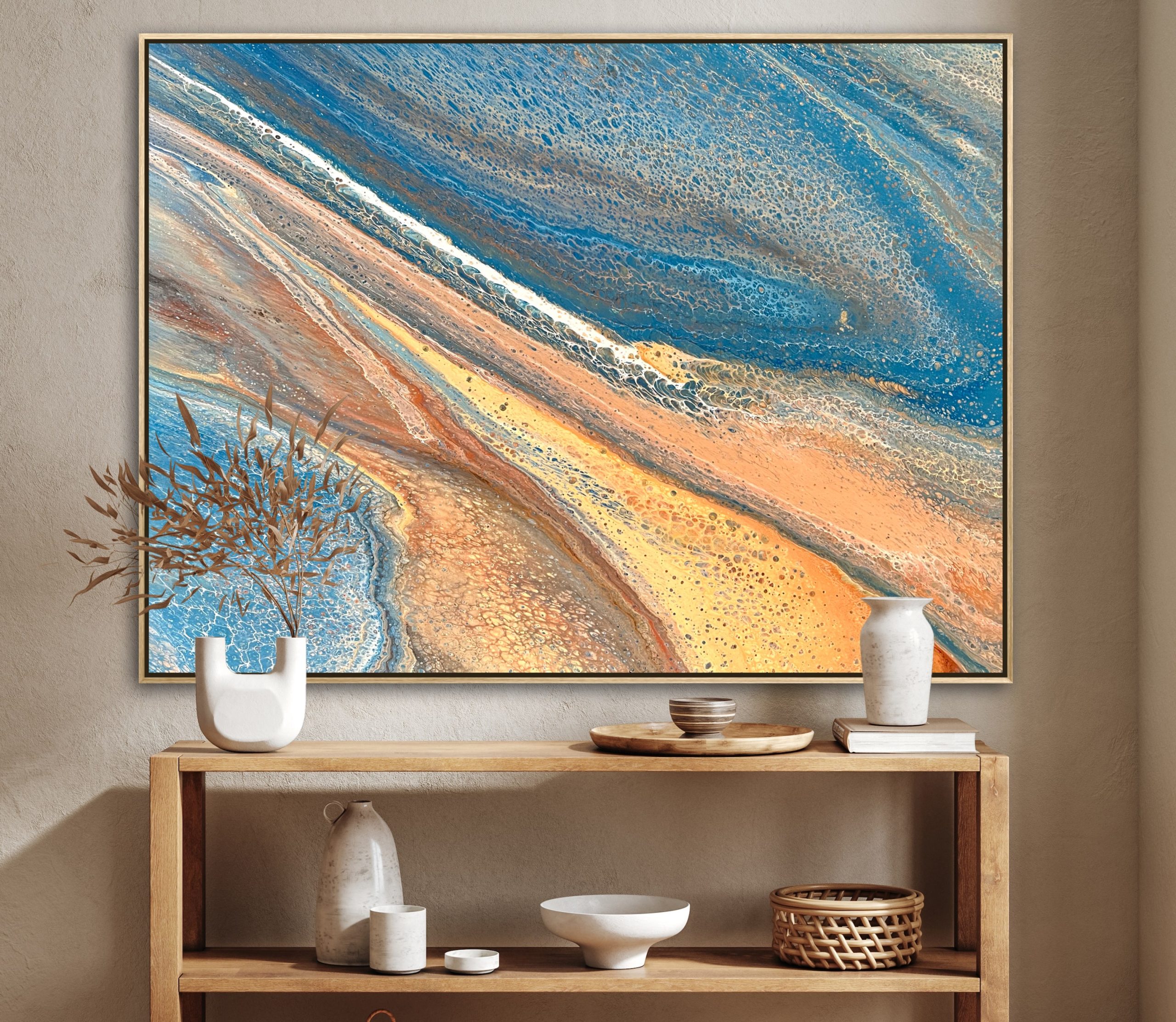 Tidal Bay – original artwork by Angela Roskell – a unique, eye-catching multi-directional large abstract acrylic painting stretched and ready to hang.