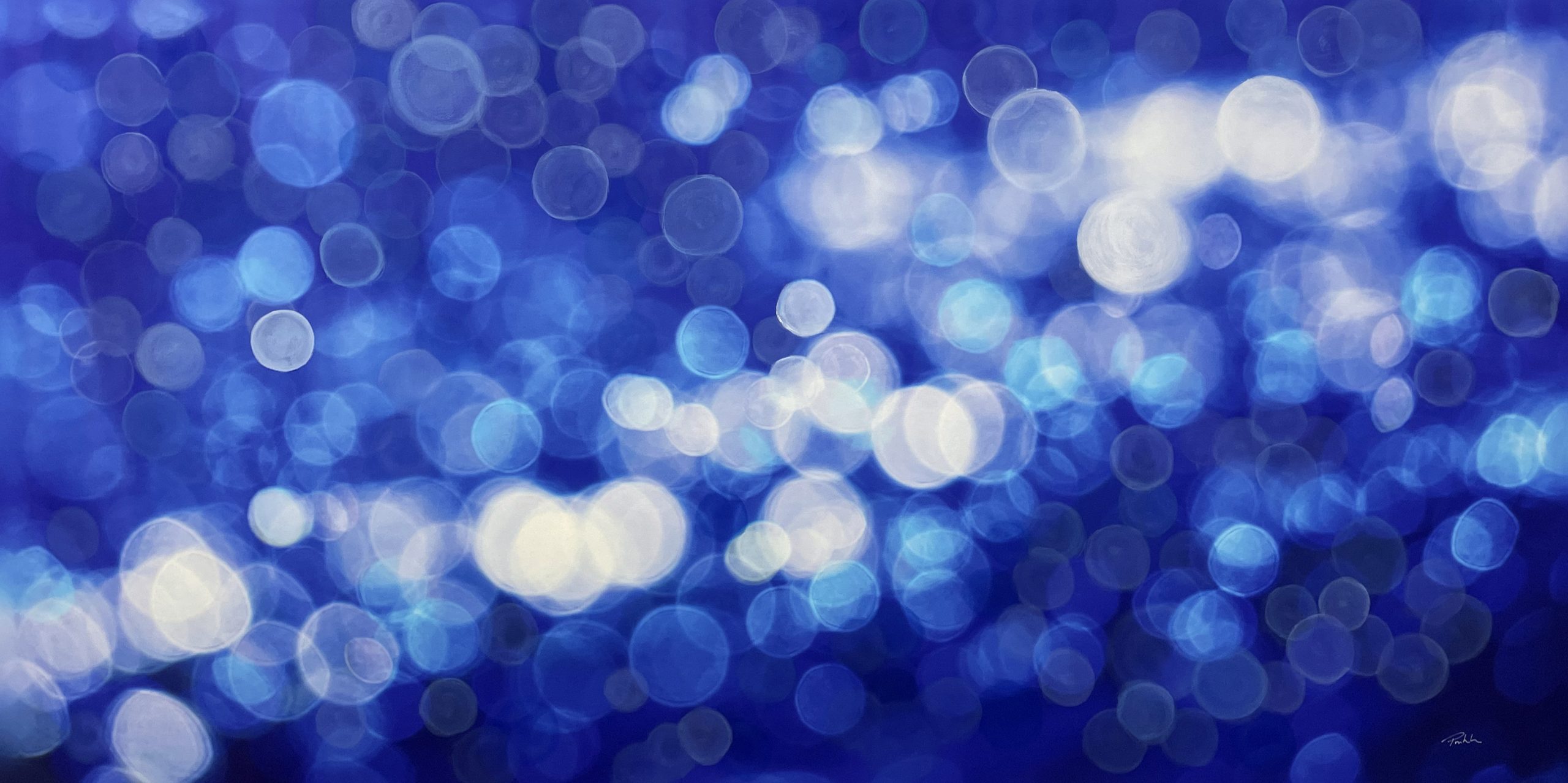 ‘Tide of Light’ by Bruce Peebles captures the ocean in a moment of quiet luminosity, where sunlight breaks apart and drifts across the water in soft, glowing circles. Rich layers of blue create depth and movement, while scattered reflections suggest the gentle pulse of waves and the ever-changing nature of the sea.