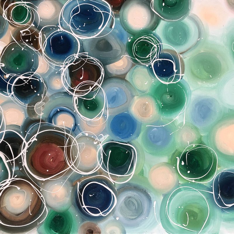 An original acrylic and oil pastel painting on stretched canvas- finished in a high quality black floating frame and ready to hang – an eycatching statement piece.