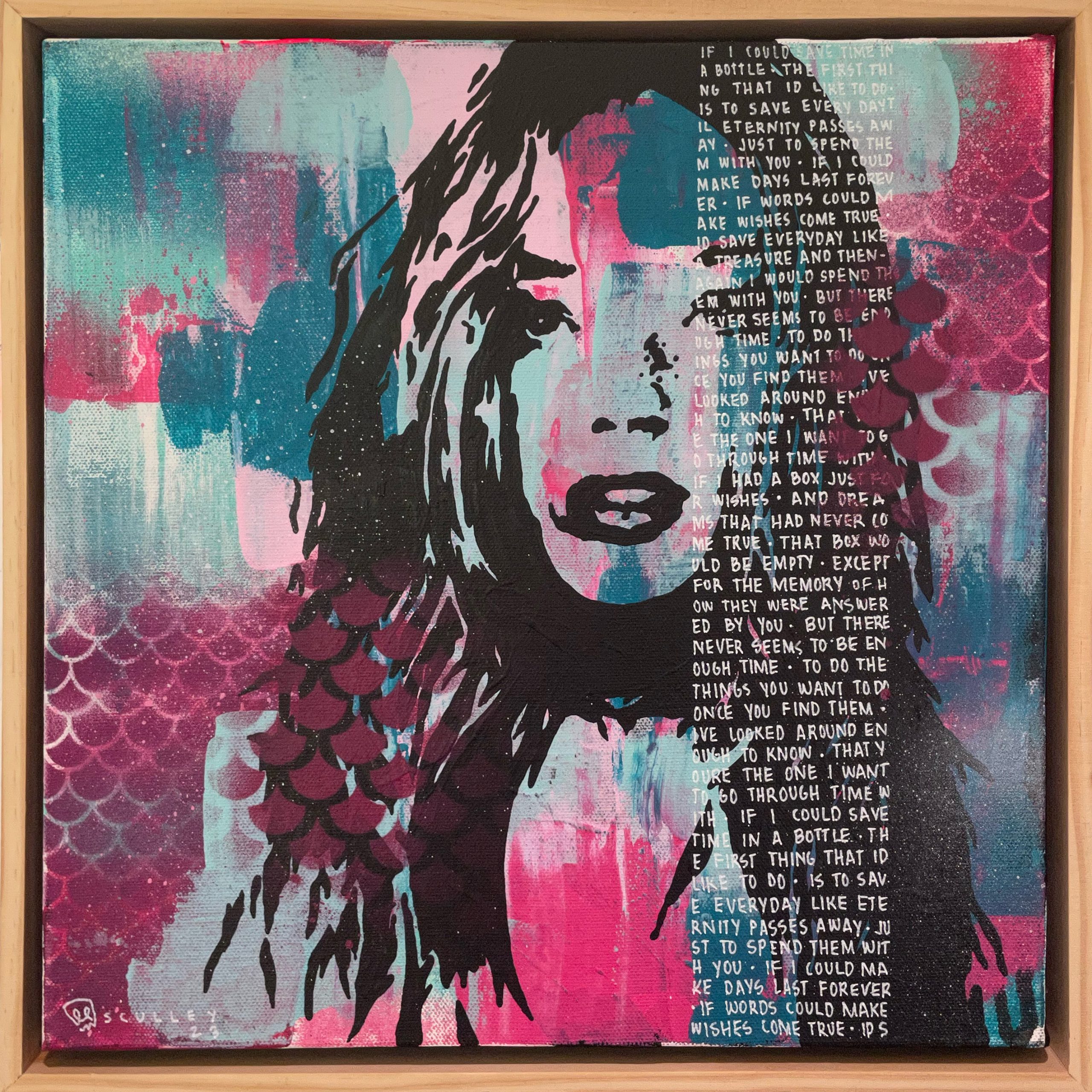 Mixed media – acrylic spray paint and ink on canvas