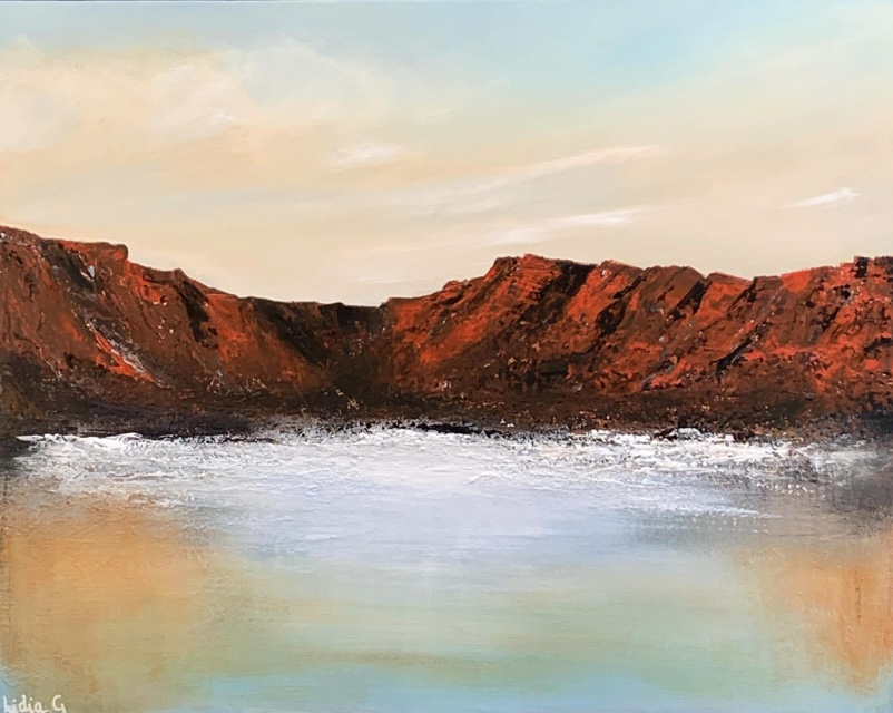 Inspired by the incredible diversity of the Australian landscape from its rugged coastlines, snow-capped mountains and the idiosyncratic landscape of the sandy desert with its sun baked monoliths and rainforests. The edges of the painting are painted in Lamp black and comes with professional wire hanger and a Certificate of Authenticity.