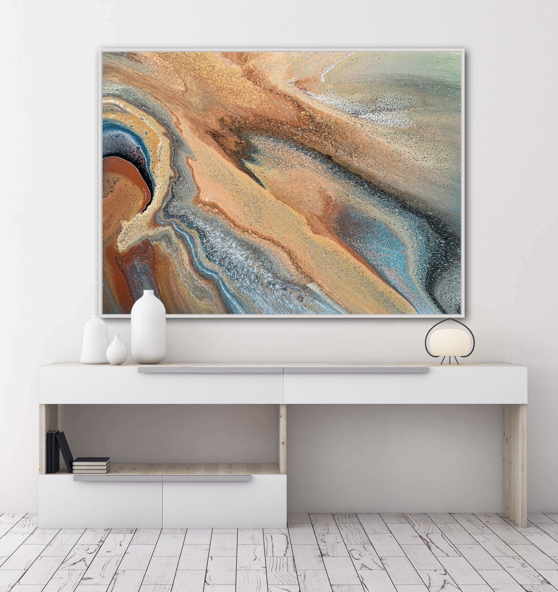 ‘In situ’ photos have been included to help with visualisation of the artwork in your home. In situ photos provided were created using the ArtStage app and may not be perfectly to scale. This being said, every effort has been made to represent the size of the art accurately but please read the dimensions of the artwork to ensure it fits your space perfectly. Where provided, photos of framed art are for illustrative purposes only.