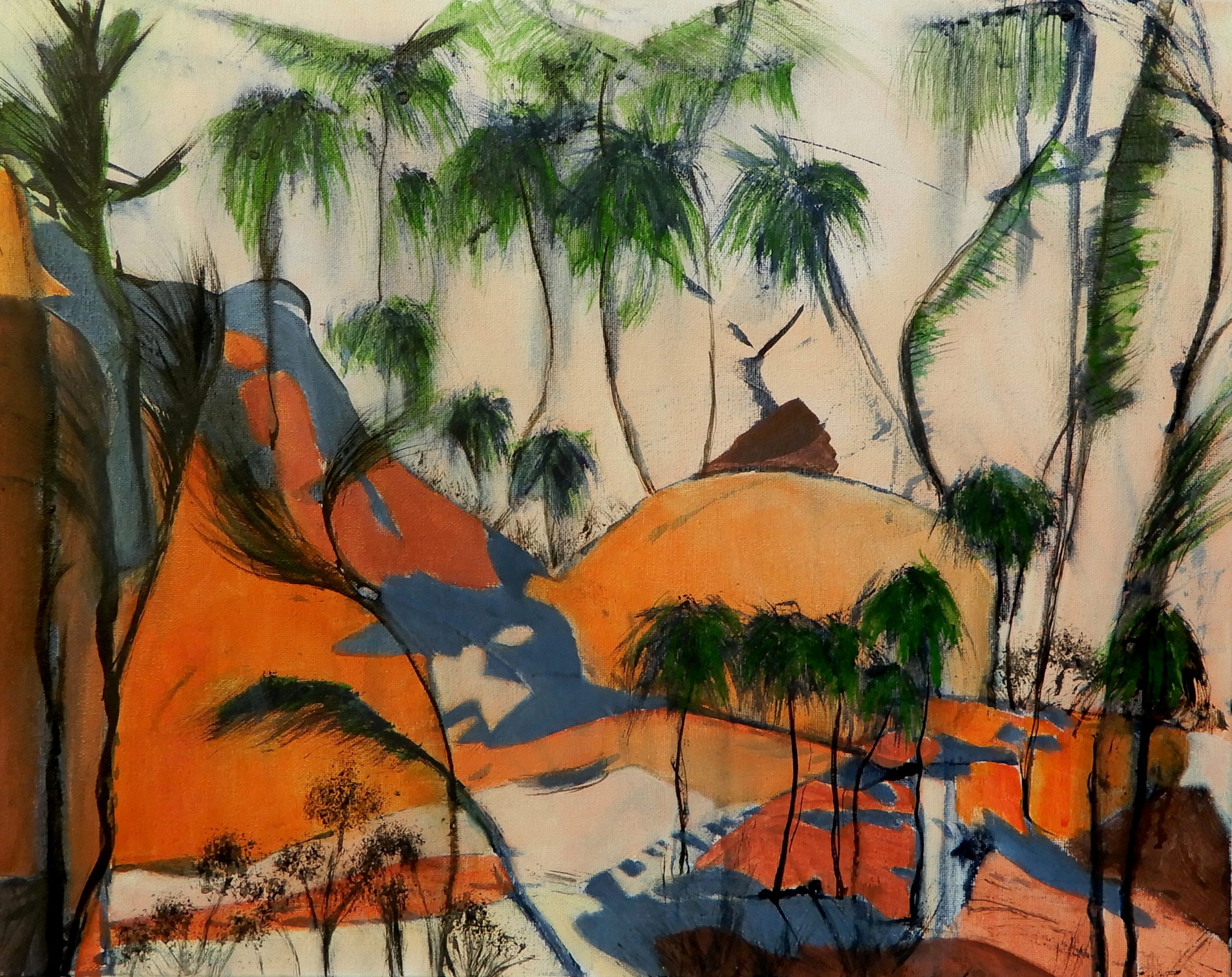 A little meditation on Top End florae, verdant greens and earthy colours, the lovely informal forms of pandanus and palms.