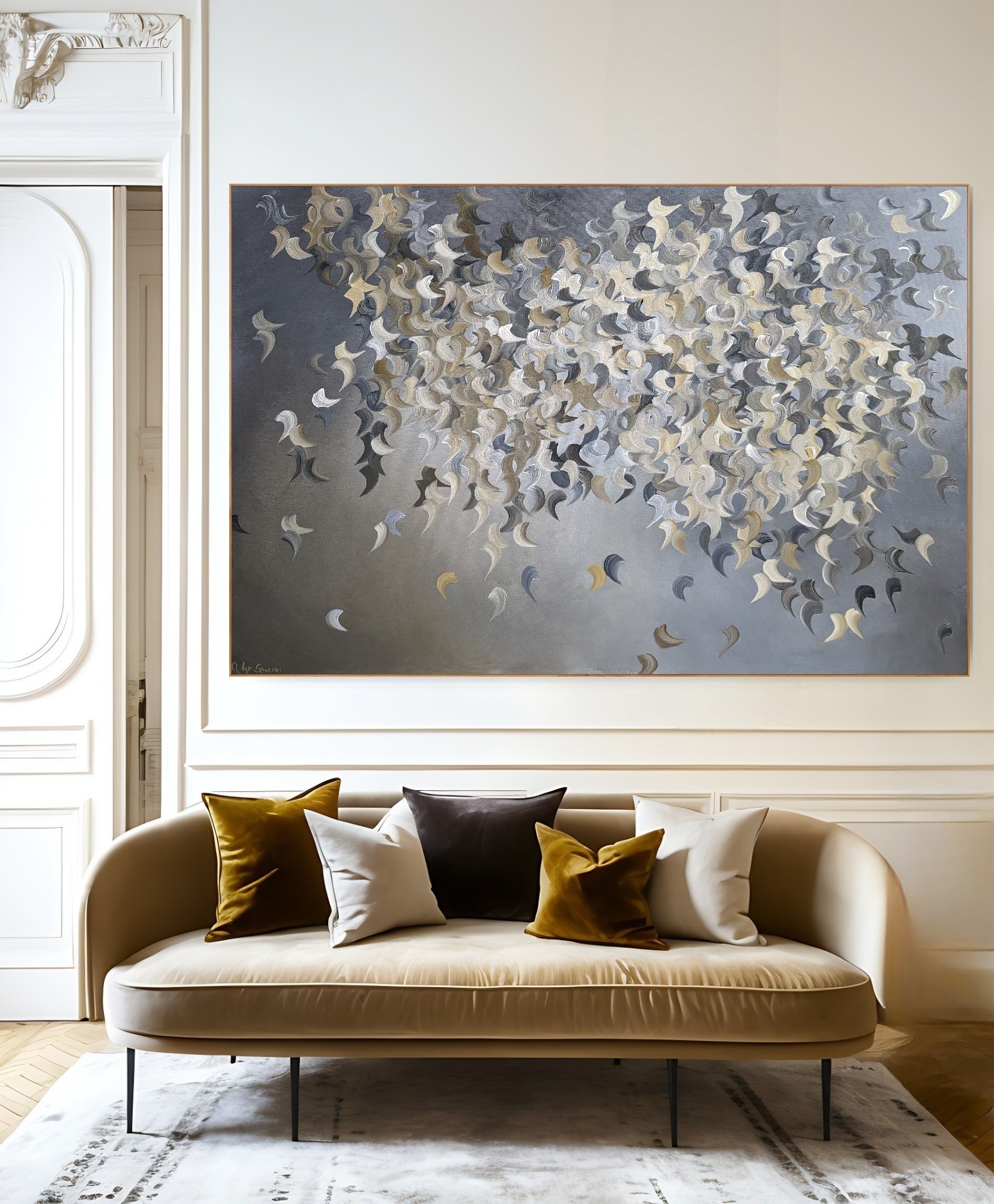 I view painting as sheer passion and feeling. Through my process I don’t seek to depict a set idea or subject, but instead I let scenes and dynamic movement emerge organically.