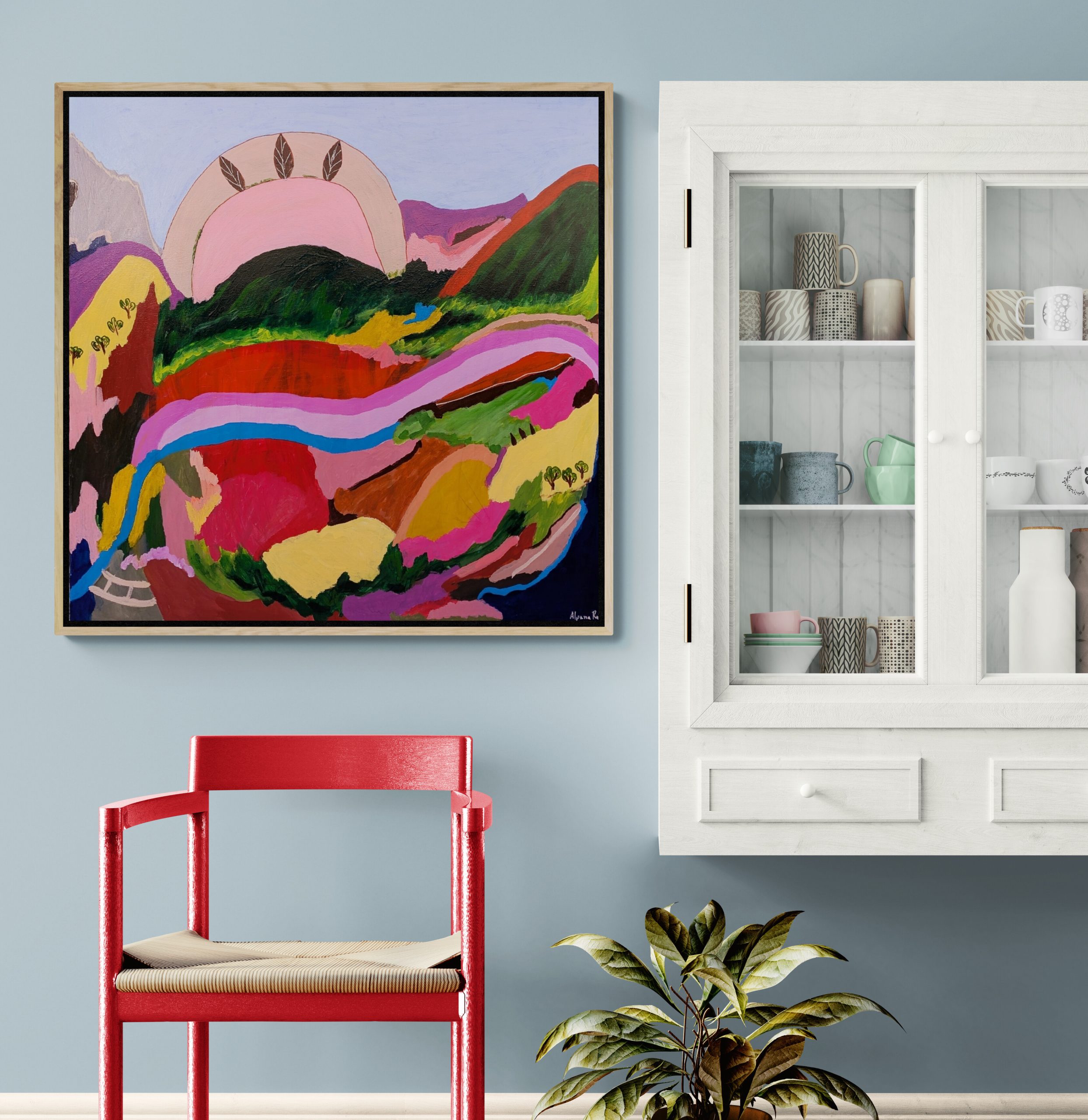 In this abstract landscape, I sought to encapsulate the dynamic interplay between nature and imagination. The vibrant colors and bold shapes represent the fluidity of the natural world, unbounded by the constraints of realism. Each hue and curve is a reflection of the emotional resonance that landscapes evoke—a sense of wonder, peace, and the infinite possibilities that the earth offers.