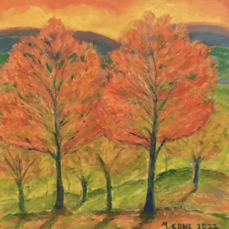This is a set of two paintings that can be hung side by side together or separate. Size of each artwork is 60 x 90cm.