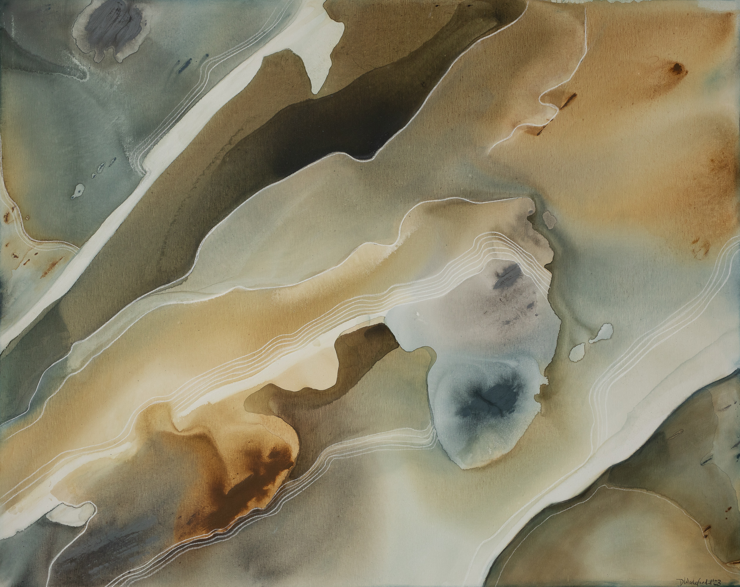 Traces by Dinah Wakefield is inspired by the light, the colours and the natural beauty of the Noosa region of Australia. “What I love most about Noosa is the interplay of light. From the oceans to the clouds, to the river estuaries and the hinterland, this canvas unfolds before me every day and finds expression in my paintings”.