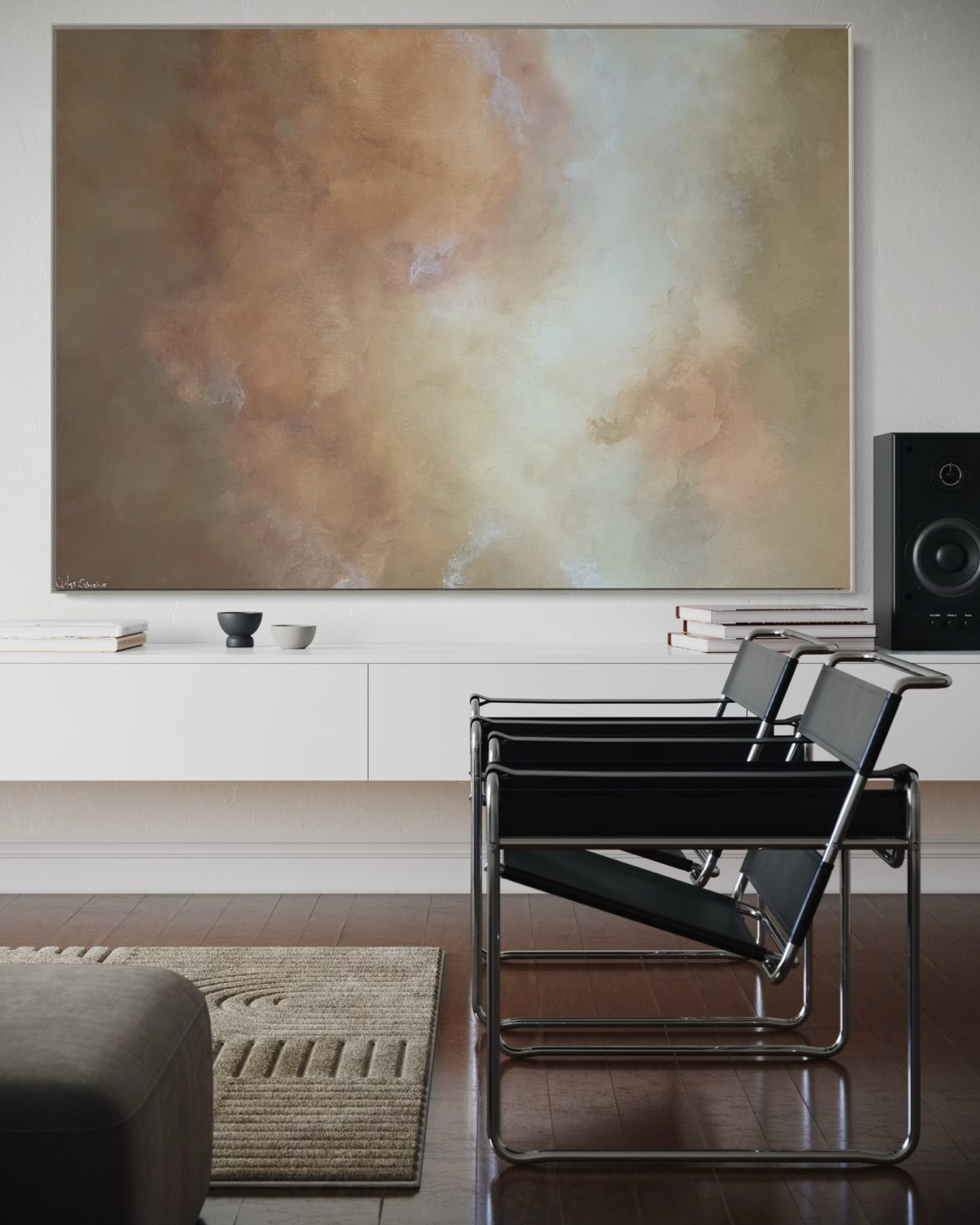 I view painting as sheer passion and feeling. Through my process I don’t seek to depict a set idea or subject, but instead I let scenes and dynamic movement emerge organically.