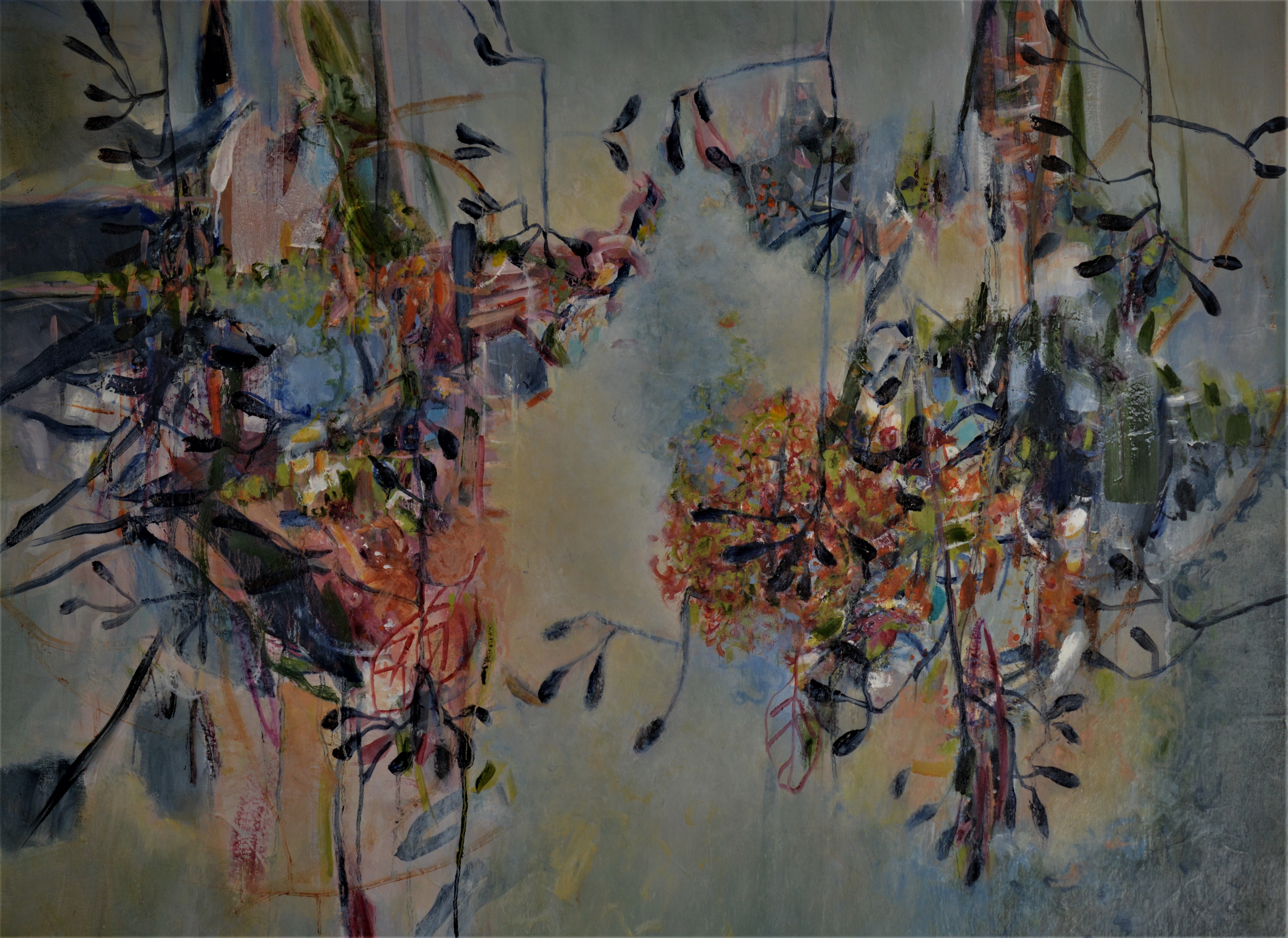 “I love being immersed in nature and draw inspiration from my coastal and bush surroundings especially local and hinterland creeks and streams. I work abstractly to reinterpret nature’s patterns, rhythms and colours”.