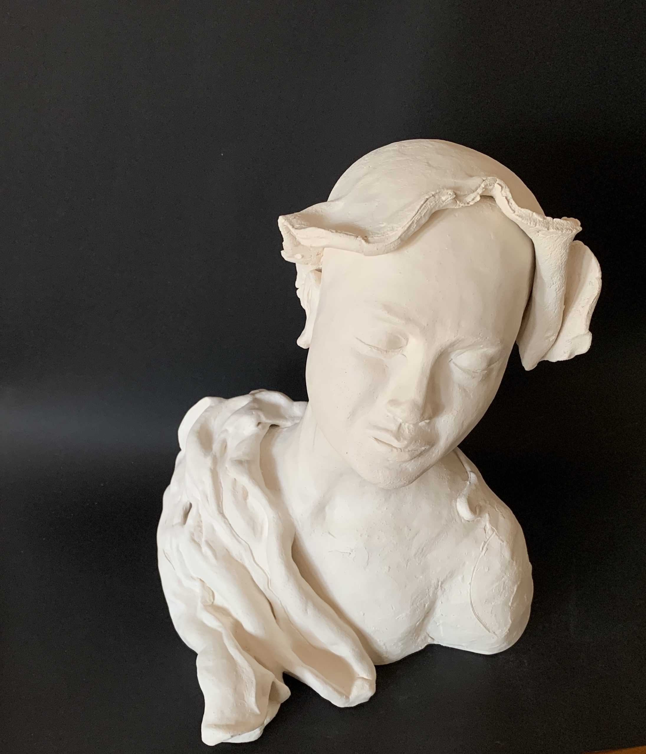 Tranquil – sculpture by Kim Rees – draped bust. Contemporary.