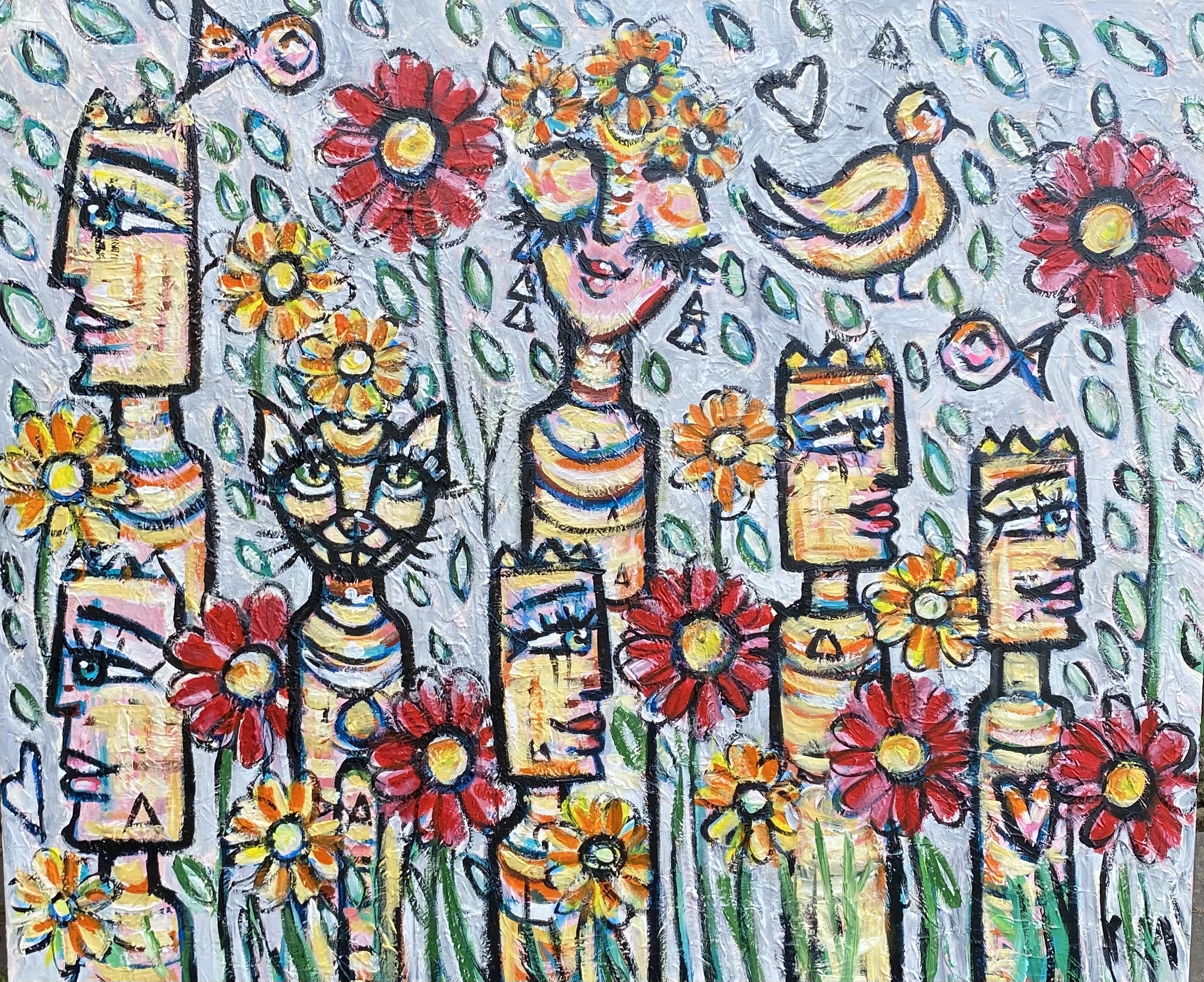 Painted on stretch fabric canvas which is stretched on pine wooden backing