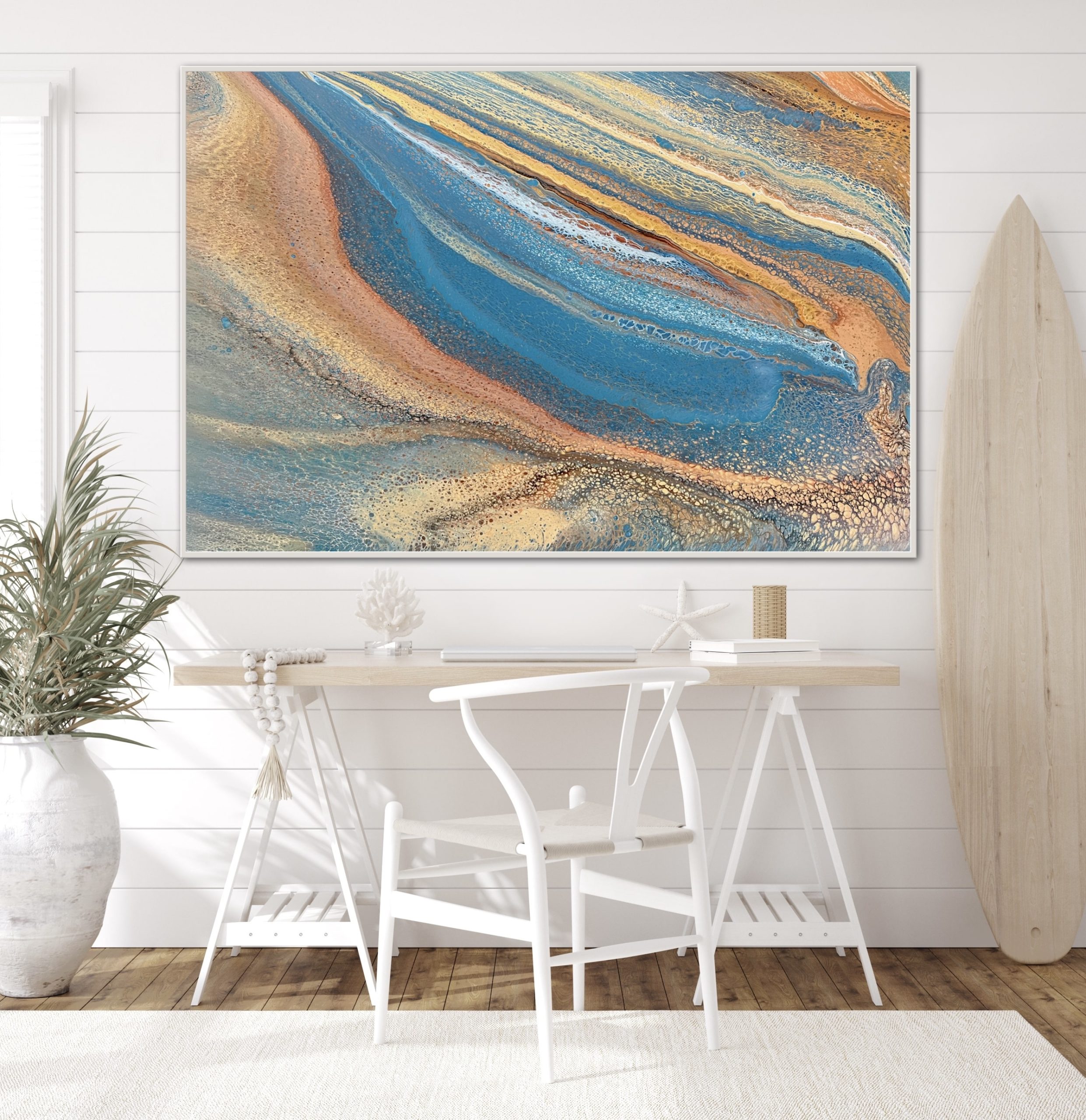 ‘In situ’ photos have been included to help with visualisation of the artwork in your home. In situ photos provided were created using the ArtStage app and may not be perfectly to scale. This being said, every effort has been made to represent the size of the art accurately but please read the dimensions of the artwork to ensure it fits your space perfectly. Where provided, photos of framed art are for illustrative purposes only.
