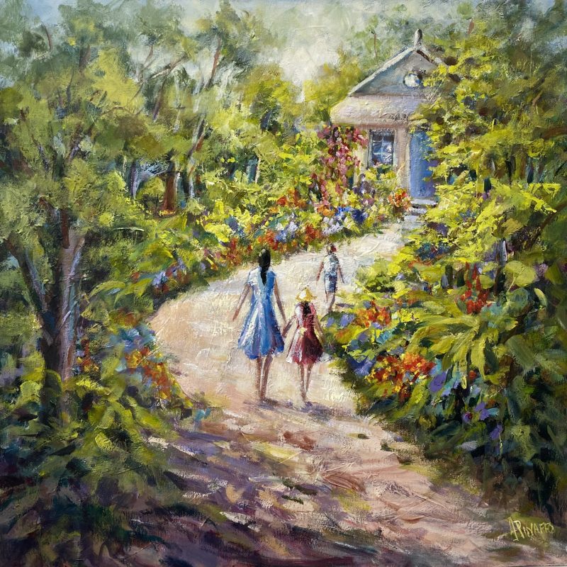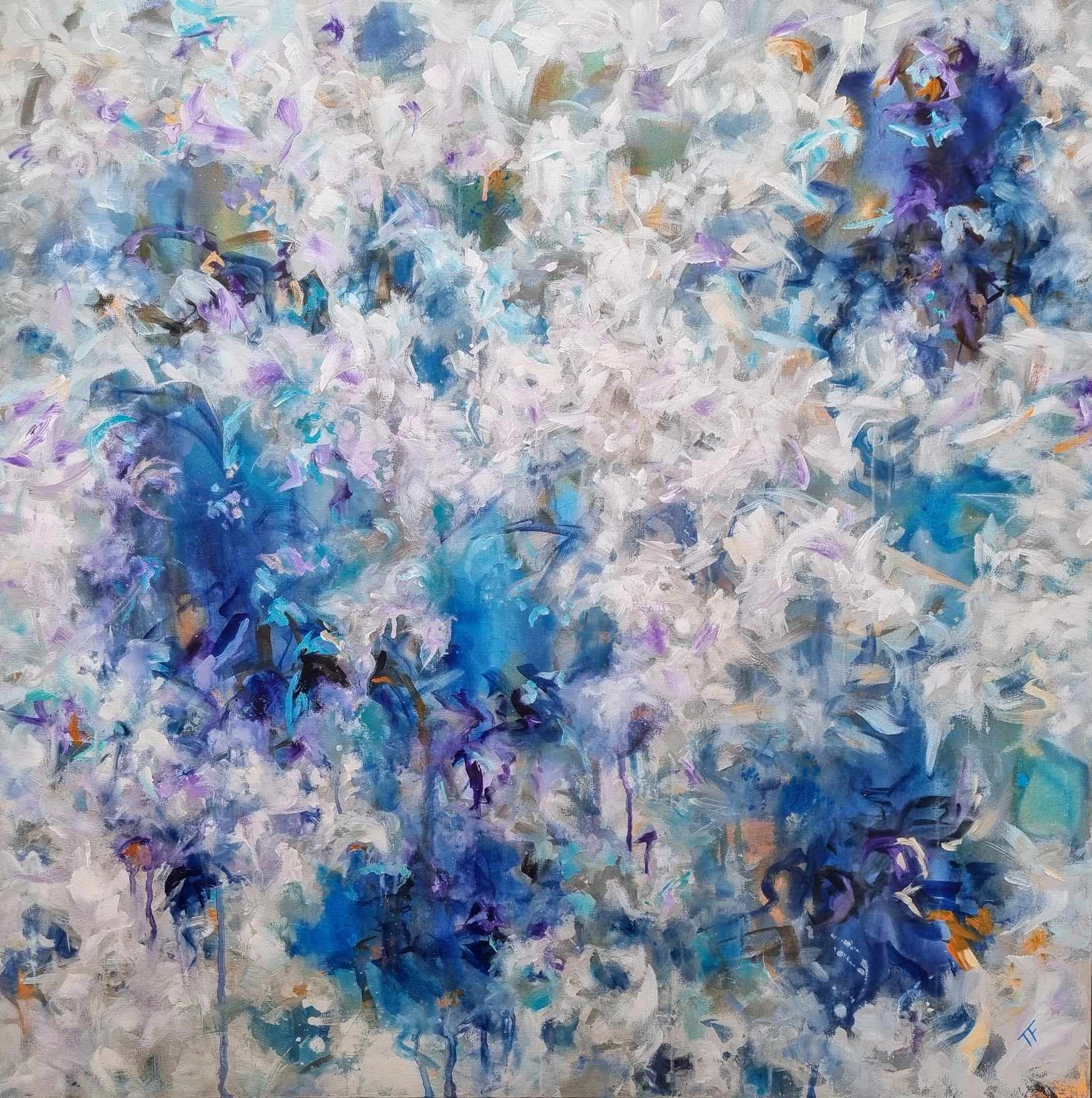 I have to say, this new painting is one of my absolute favourites. Created over several days with high-quality, lightfast acrylic paint, it boasts many layers that impart both depth and lightness. This layering technique results in an airy, organic feel with a beautiful flow that draws the viewer in. I can stare at this painting as I would at beautiful ocean waters. To me, this artwork evokes peaceful, happy feelings.