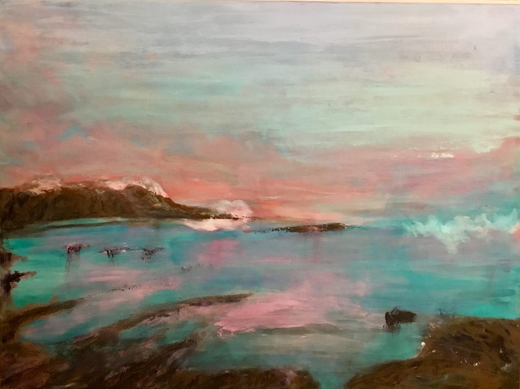 Tranquility is a painting based on a view from the red iron cliffs of Coochiemudlo Island looking out towards the bay, it is a lovely serene spot on a hot summer’s day and a perfect place to unwind and let your cares and worries drift away. Science has proved that the sea has the ability to improve our well being both mentally and physically so I am very lucky to live on the Redlands Coast. I may stay saner just a little longer.