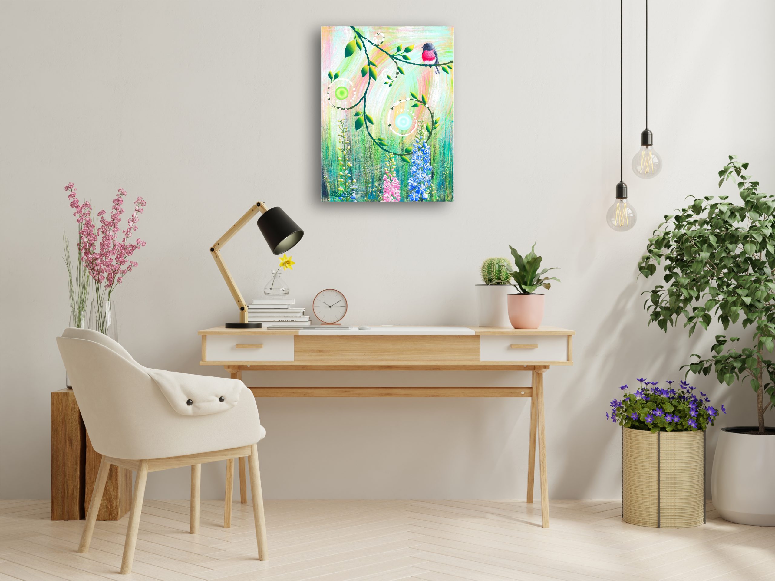 Please note: Paintings should not be hung in direct sunlight, near heat or in damp areas.