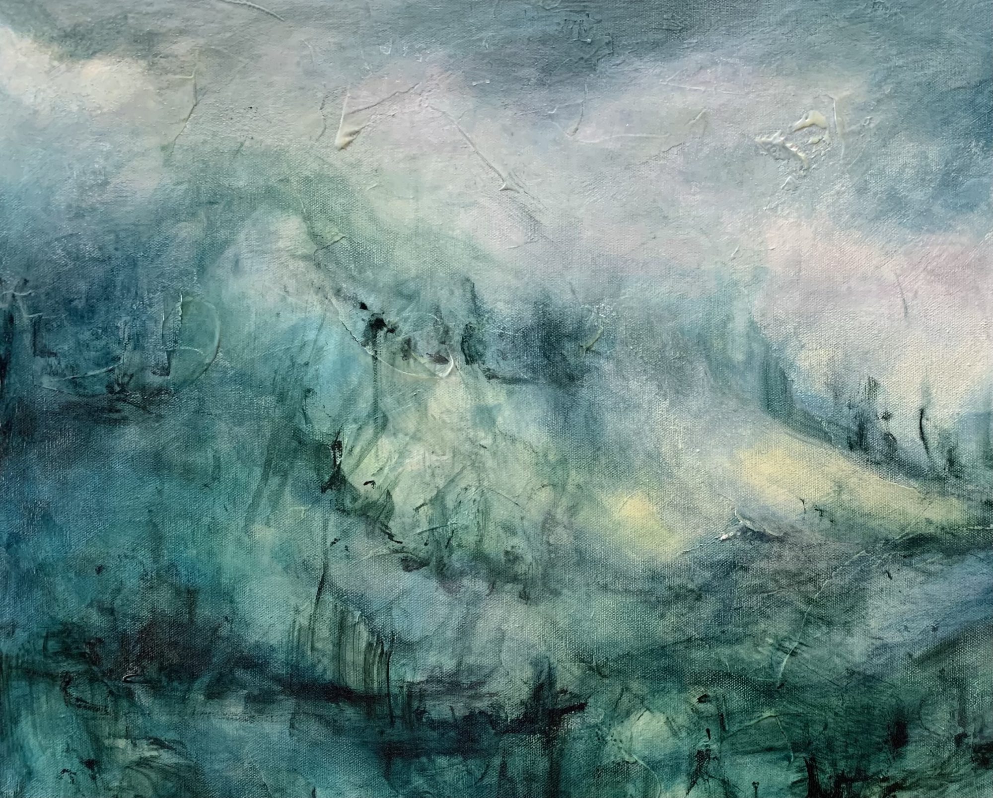 Transcendence by Cathy Gilday – Painting your emotions can be such a confronting thing to do, but at the same time, it is very liberating. Personal experiences usually make for a very honest, heartfelt creation. This piece is moody and raw, with lots of energy and gives the viewer the impression of floating through the image.
