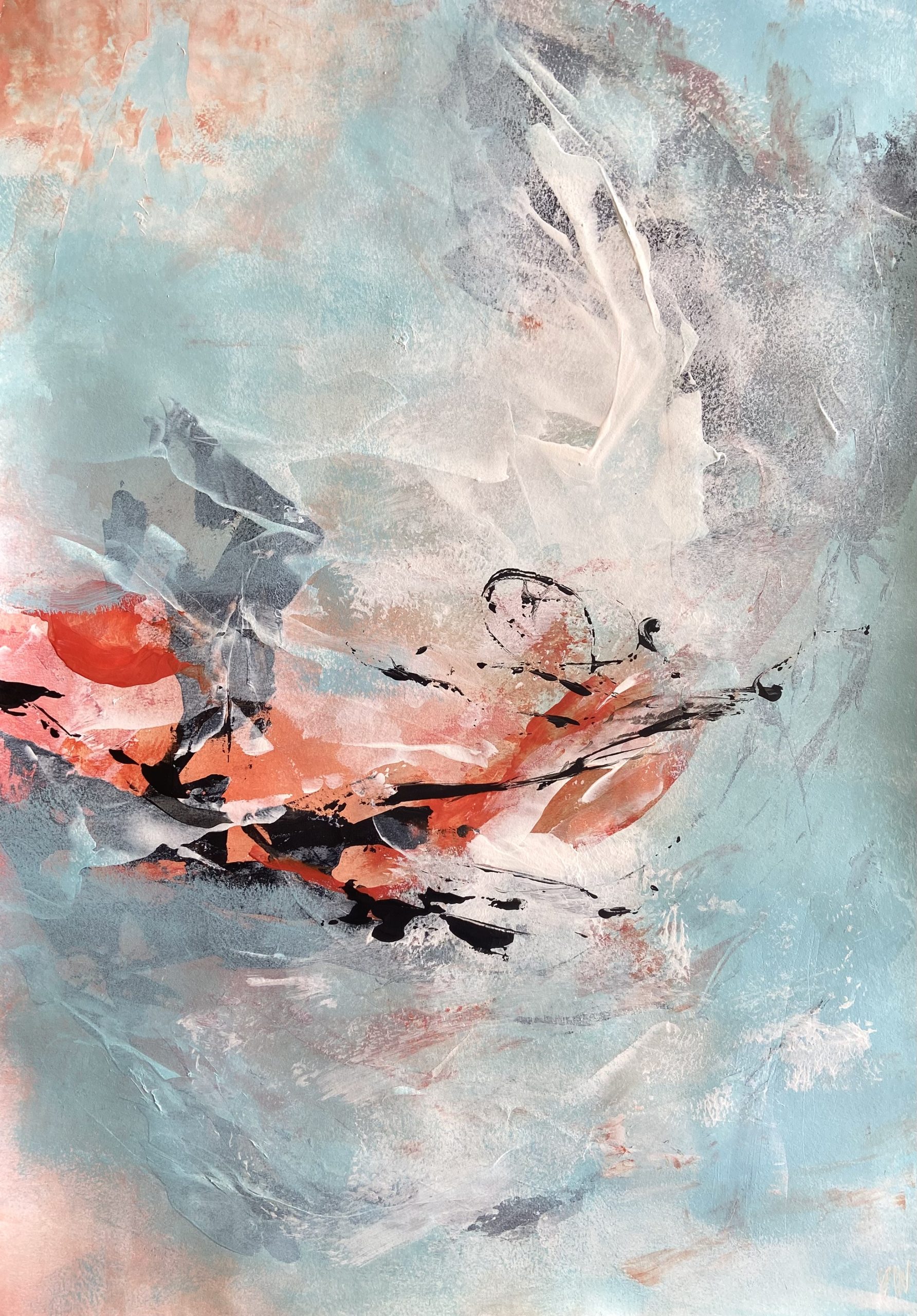 A whimsical abstract painting. 59.4 x 42 cm (A2 size). Acrylic on paper. Frame not included. Requires framing.