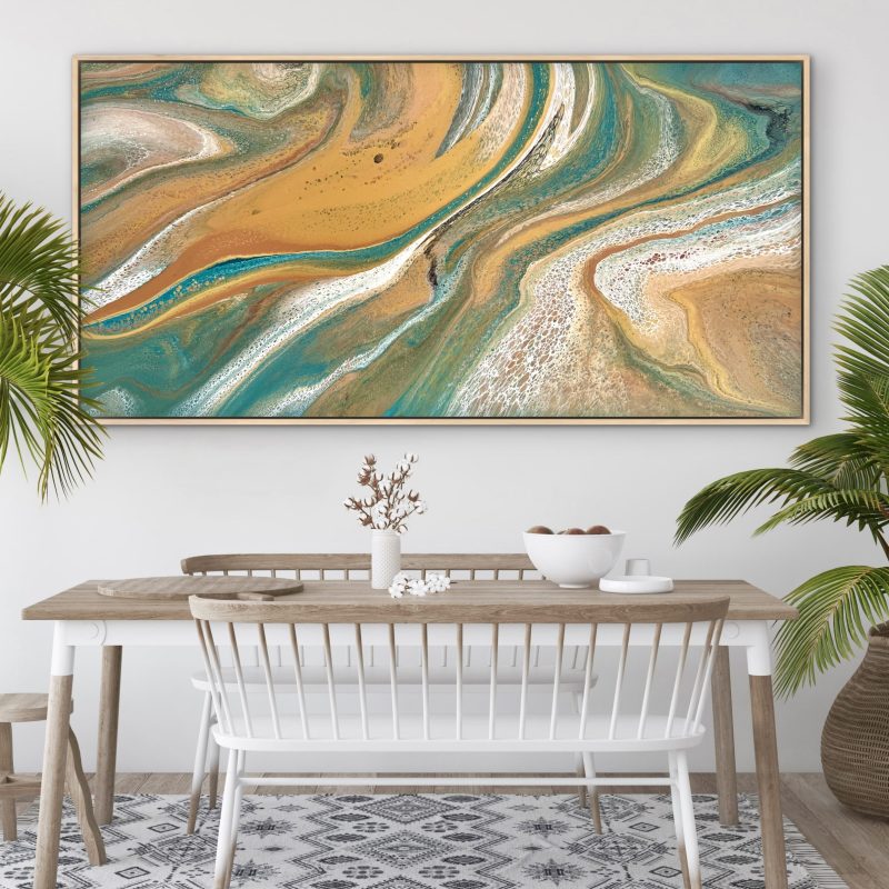 “I love being immersed in nature and draw inspiration from my coastal and bush surroundings especially local and hinterland creeks and streams. I work abstractly to reinterpret nature’s patterns, rhythms and colours”.