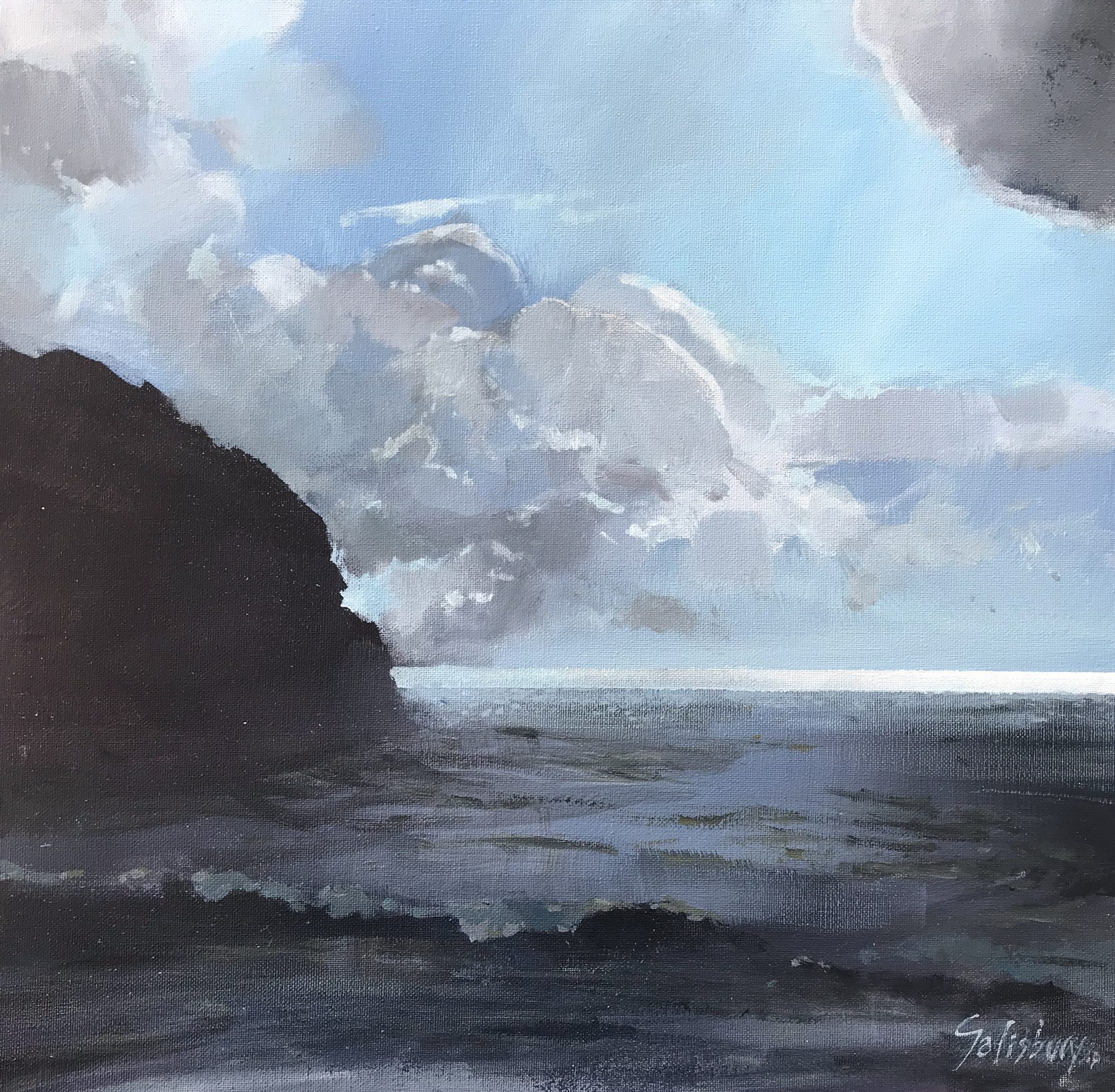 “Through You” is a work from North Stradbroke water series, focusing on moody oceans. My love affair with the ocean, mainly through many years of surfing, comes to the fore.