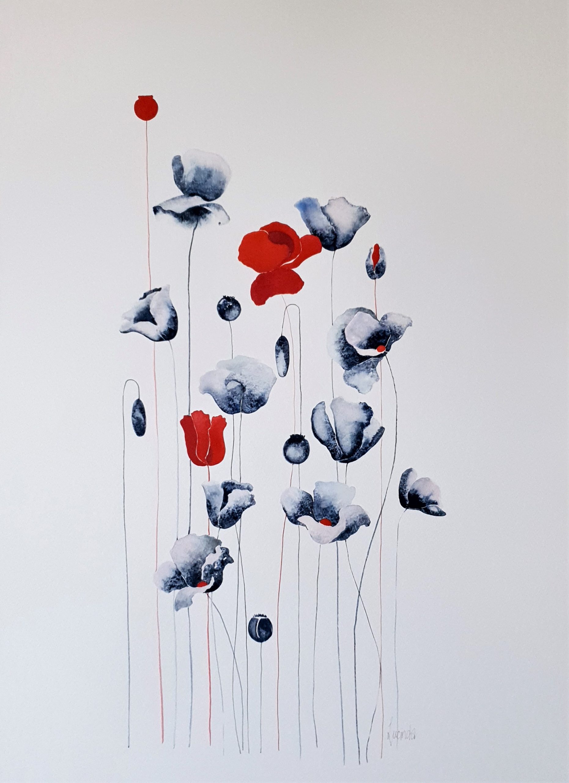 Love painting poppies – they are always so interesting as they reach up to the sun.