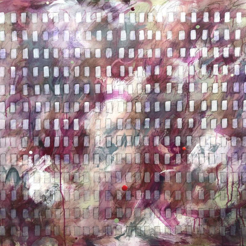 Tree Dance by Rosemary Legat – Acrylic paint, collage and charcoal pencil on stretched canvas.
