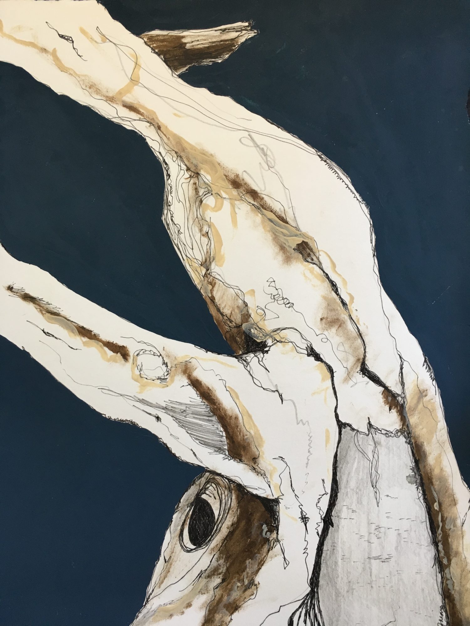 This is a hand drawn illustration of a section of tree, that flowed much like the human form.