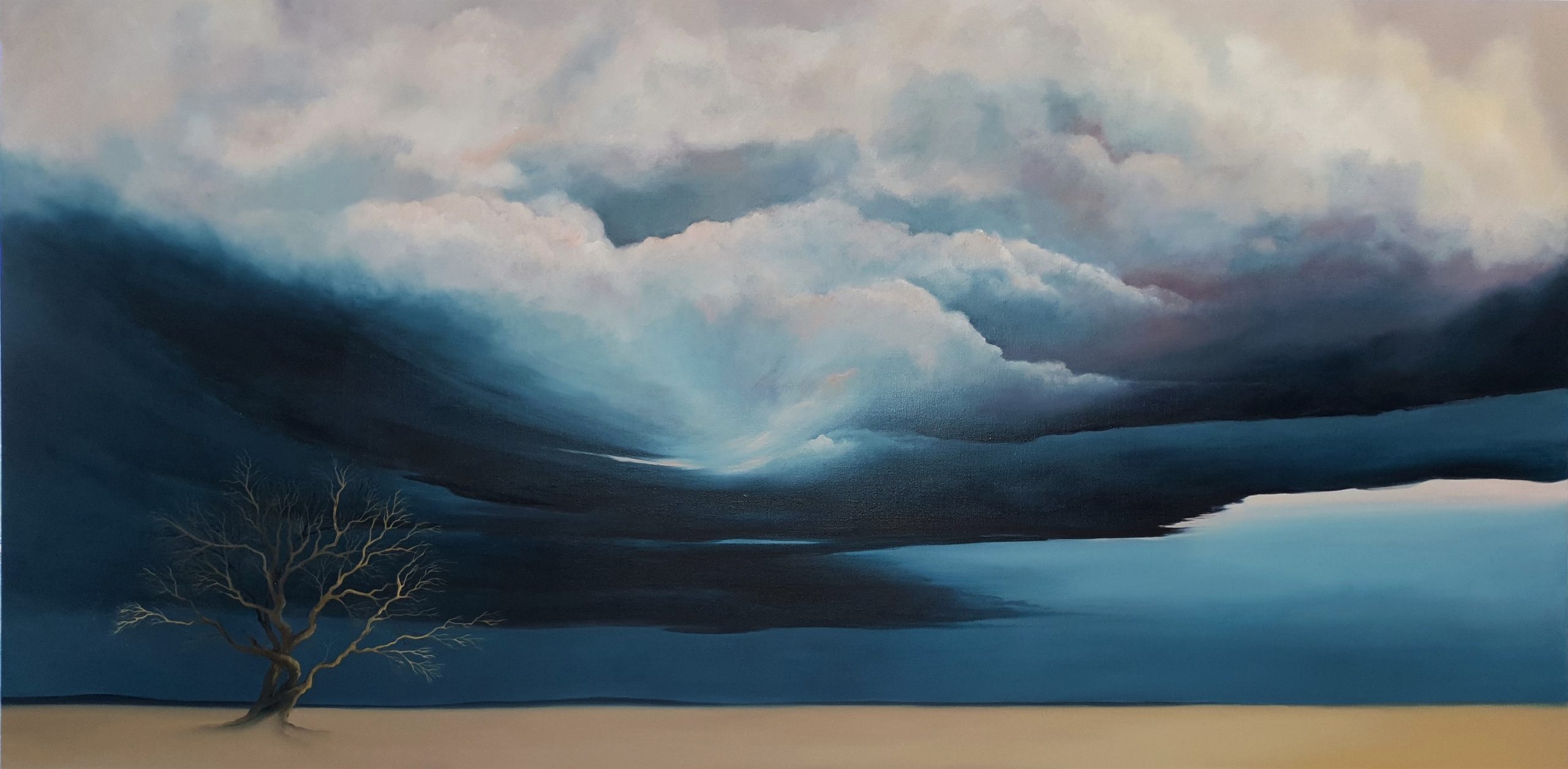 Trees Are Poems That the Earth Writes Upon The Sky by Lucinda Leveille is another in the series of the solitary image in the landscape. The full quote is from Kahlil Gibran – “Trees are poems the earth writes upon the sky, We fell them down and turn them into paper, That we may record our emptiness” .
