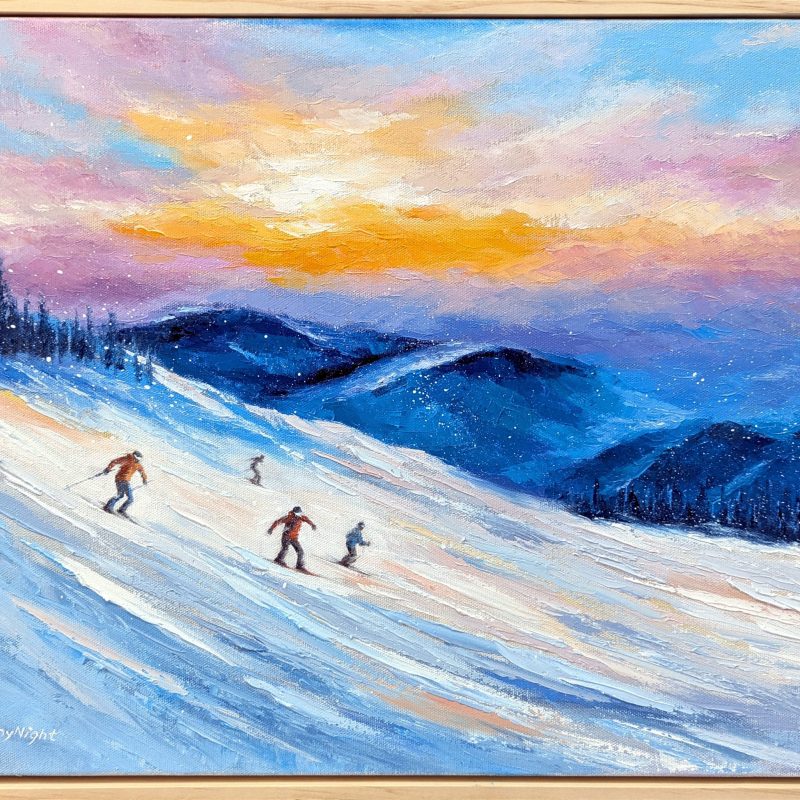Treescape by Anne Strambi – This oil painting was painted outdoors and using a palette knife to create lots of texture in the foliage and tree trunks. I started this painting at an art workshop and finished it in the studio. It is a celebration of the Australian bush and beauty of the natural world. It was painted using mainly palette knife with thick buttery oil paint. It is framed in a recycled timber frame and ready to hang.  Artwork size 30 x 24cm. The frame measures 37 cm x 32 cm.