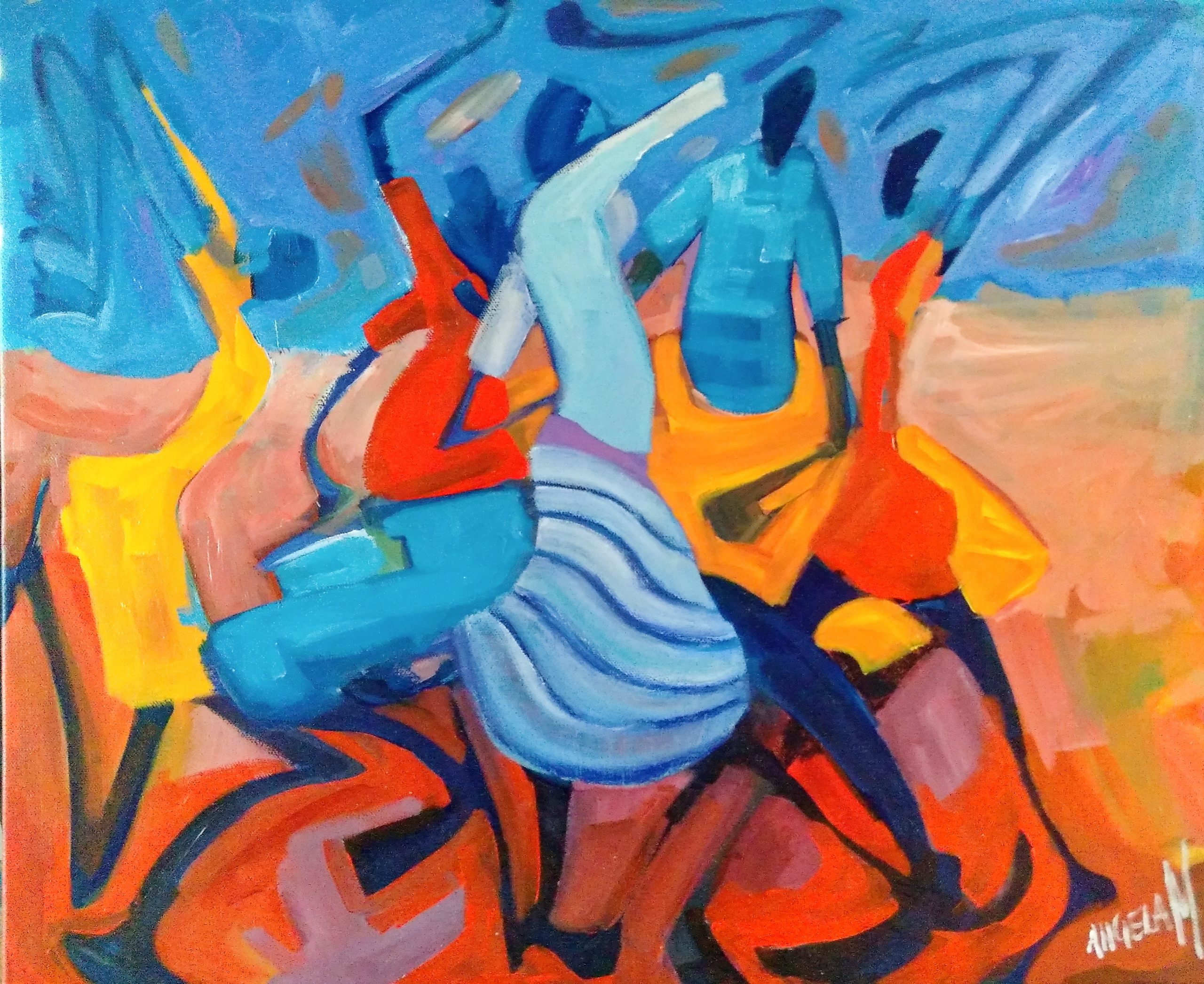 Tribal fever by Angela Mulligan original artwork.can you feel the rythmn and the beat.lets dance ,dance,dance.fun piece bold bright colours ,energy is flowing will brighten up any wall in your home or office.