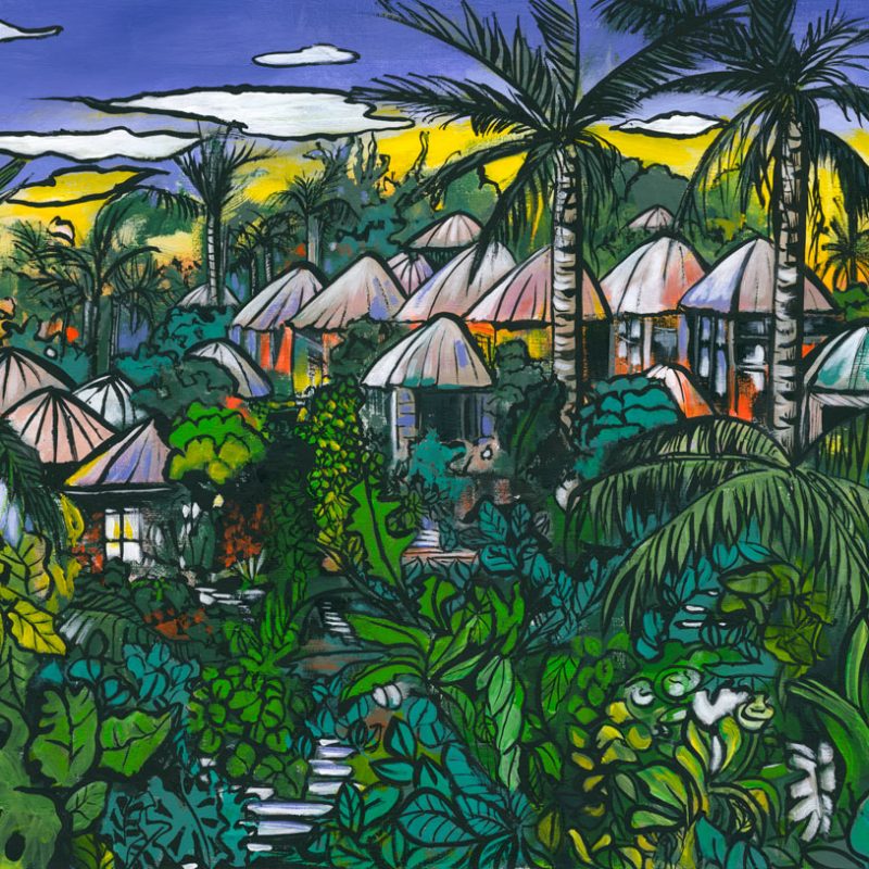 It is intended that the viewer seeks to lose themselves in the rich and fruitful oasis and remain there, away from the harsh desert of the world outside.