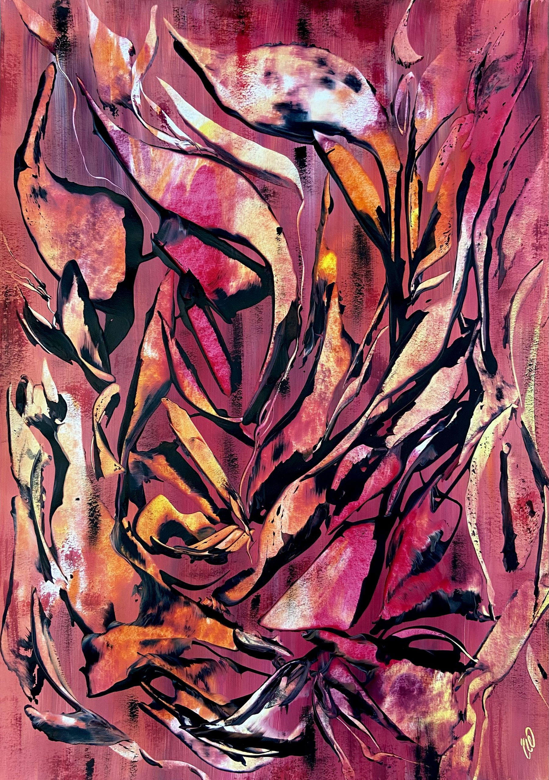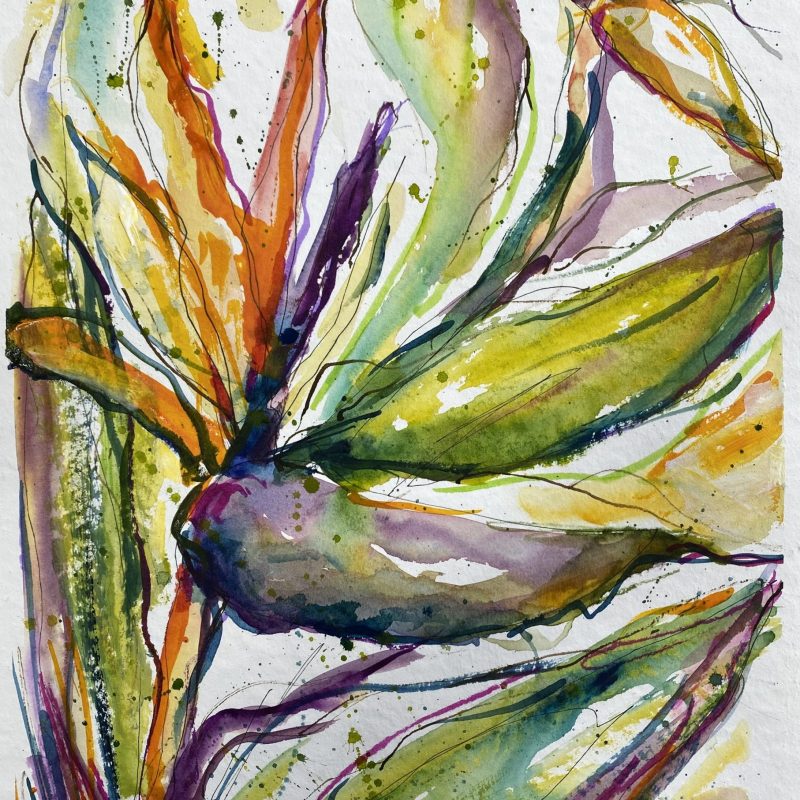 A beautiful abstract botanical piece with a warm tropical feel. Some images show what this piece looks like framed. Frames not included. 59.4 x 42 cm (A2 size) Acrylic on paper. Requires framing.