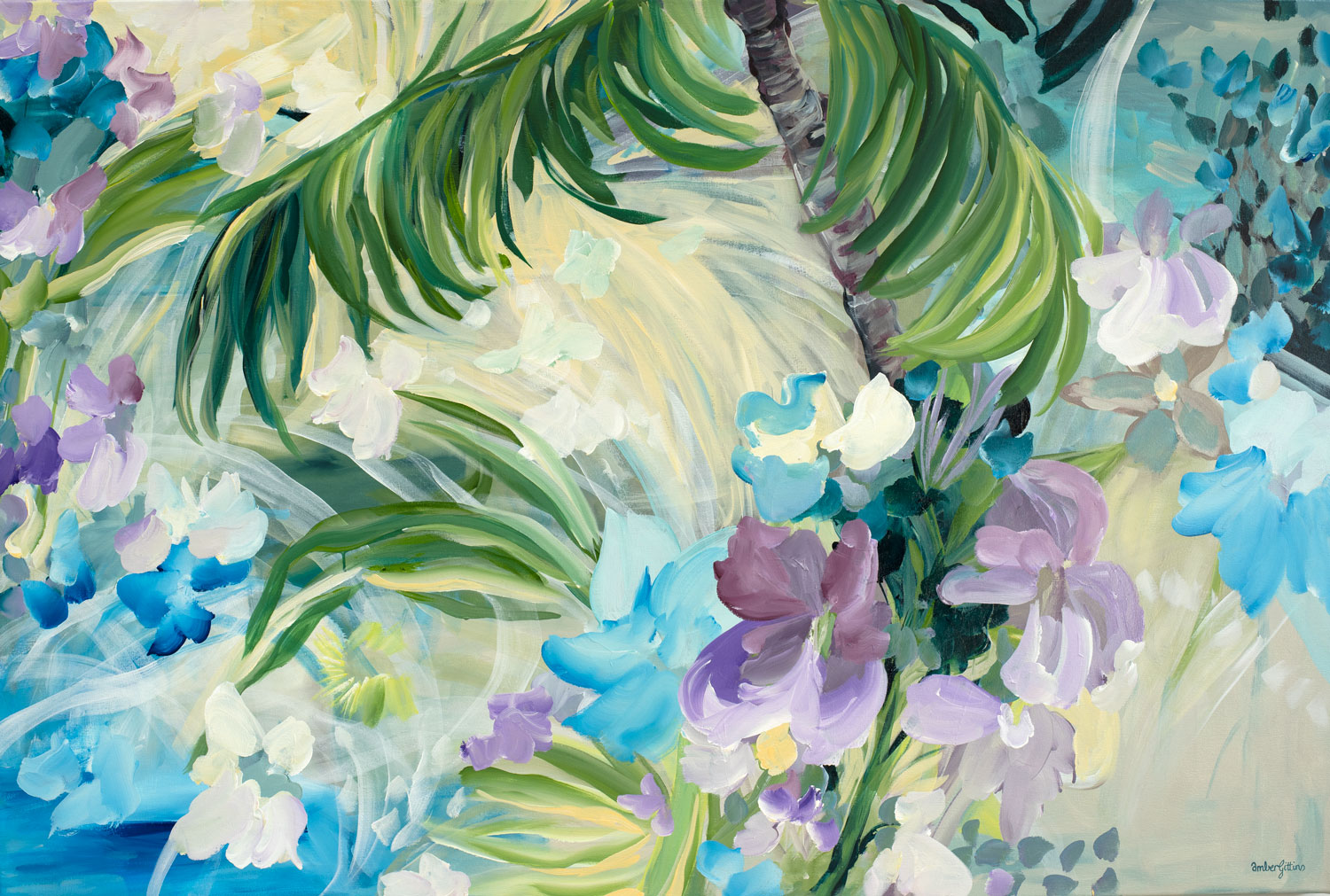 Abstract Botanical artist Amber Gittins has a love for colour and movement in her paintings. She uses acrylics as she loves the fast drying time of acrylic paints, which helps in the creation of the natural flowing movement that give her that signature style. Her colour palettes are ever changing with each piece, which can also coincide with her current mood and also varies depending on the time of year and season she is in. Nature is her constant inspiration and she loves to explore outside and take long walks in nature regularly. Amber’s artworks invoke joy and calmness within the viewer and have created a modern unique addition into collectors homes worldwide.