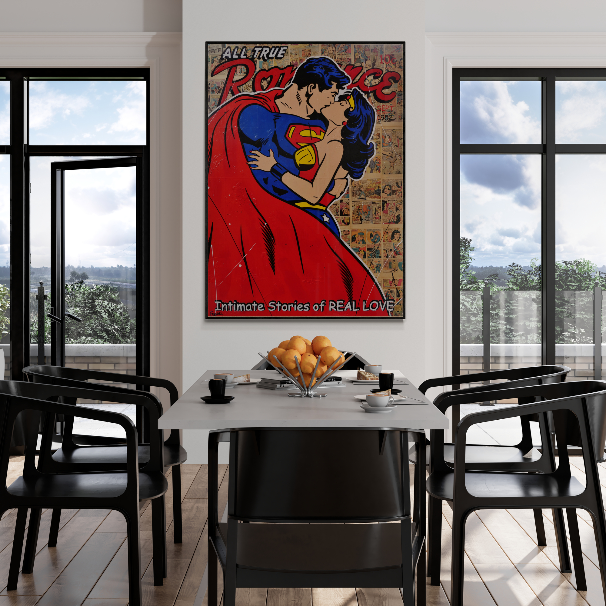 Painted on vintage 1970’s Superman Annual Comic Book pages which are stuck to the canvas and sealed with a binding varnish to ensure they will stay where they are meant to… On the canvas.