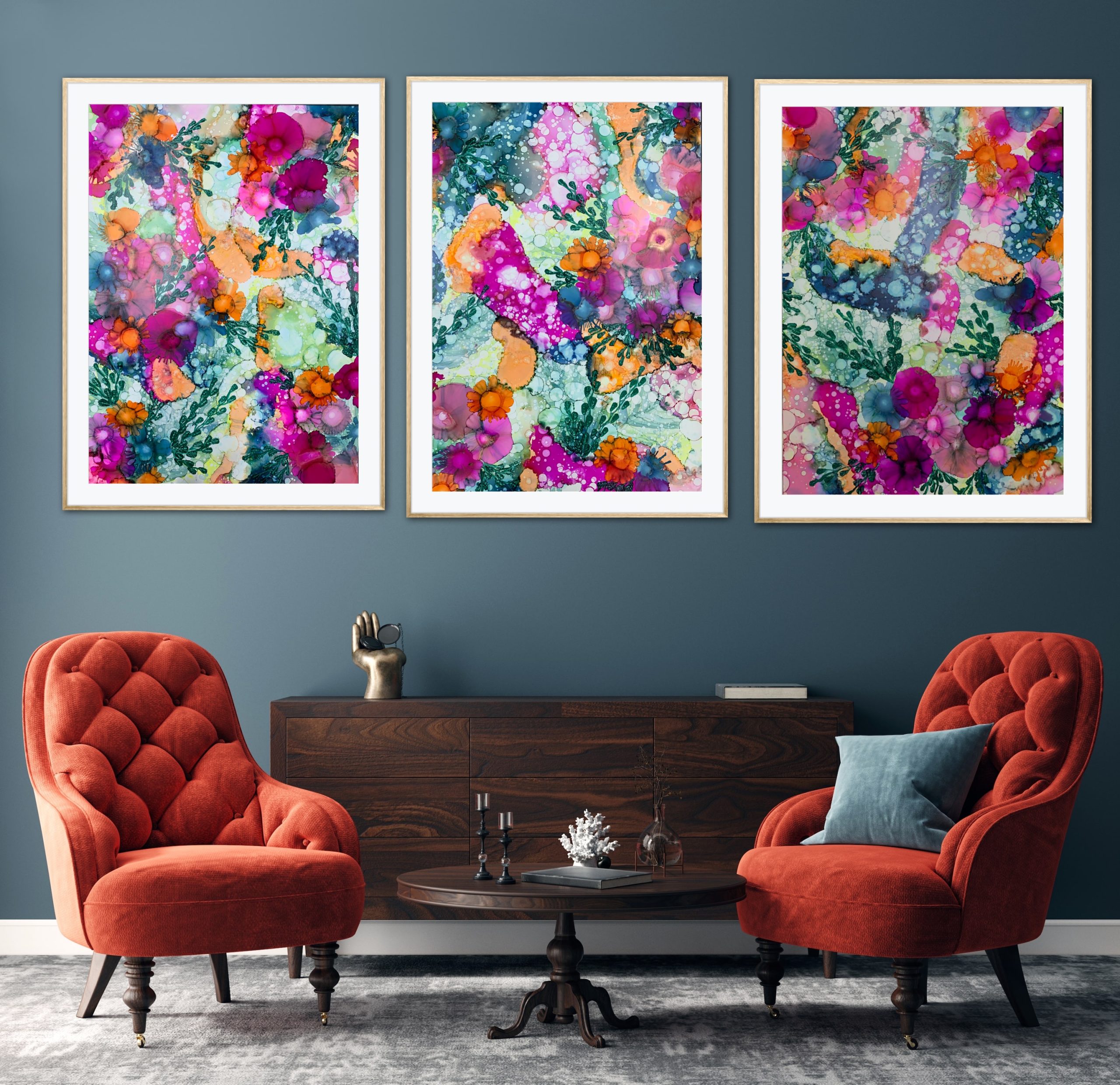 Original triptych 65 cm x 91 cm x 3 Alcohol ink on yupo paper sealed with high grade varnish and UV spray.