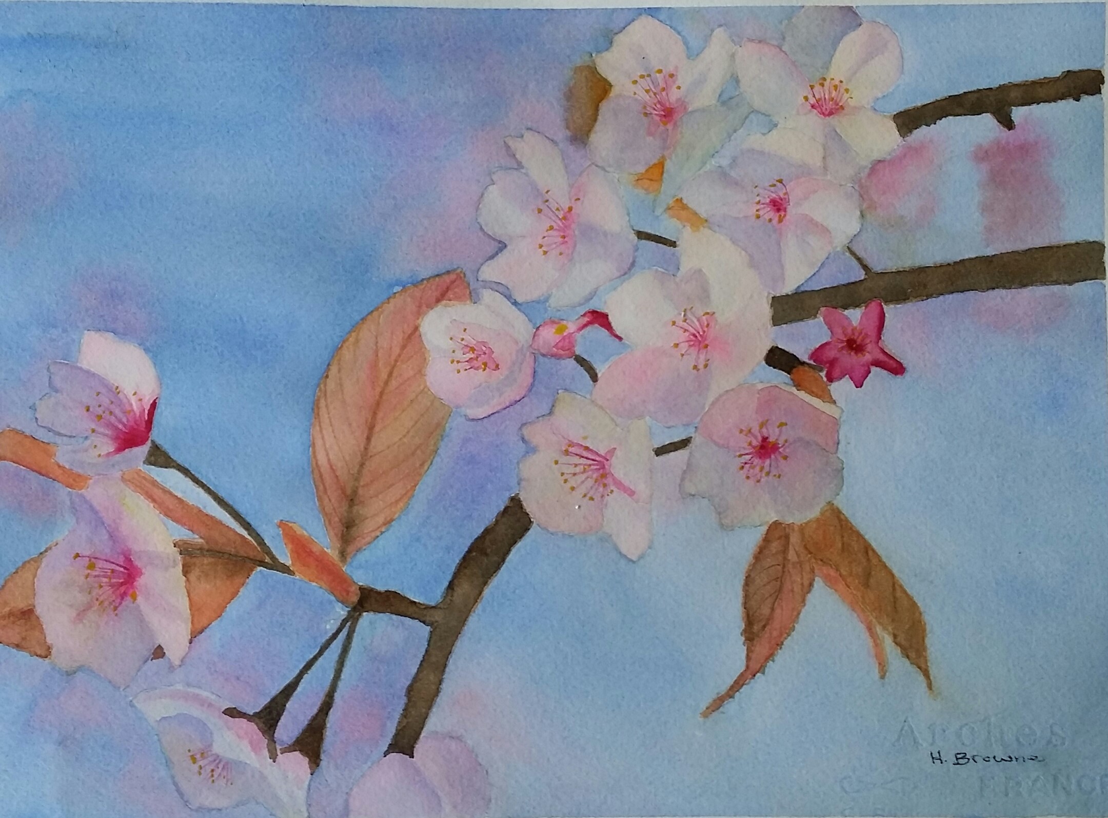 Apple Blossom by Heather Browne is a watercolour painting on quality 300gsm cold pressed watercolour paper.