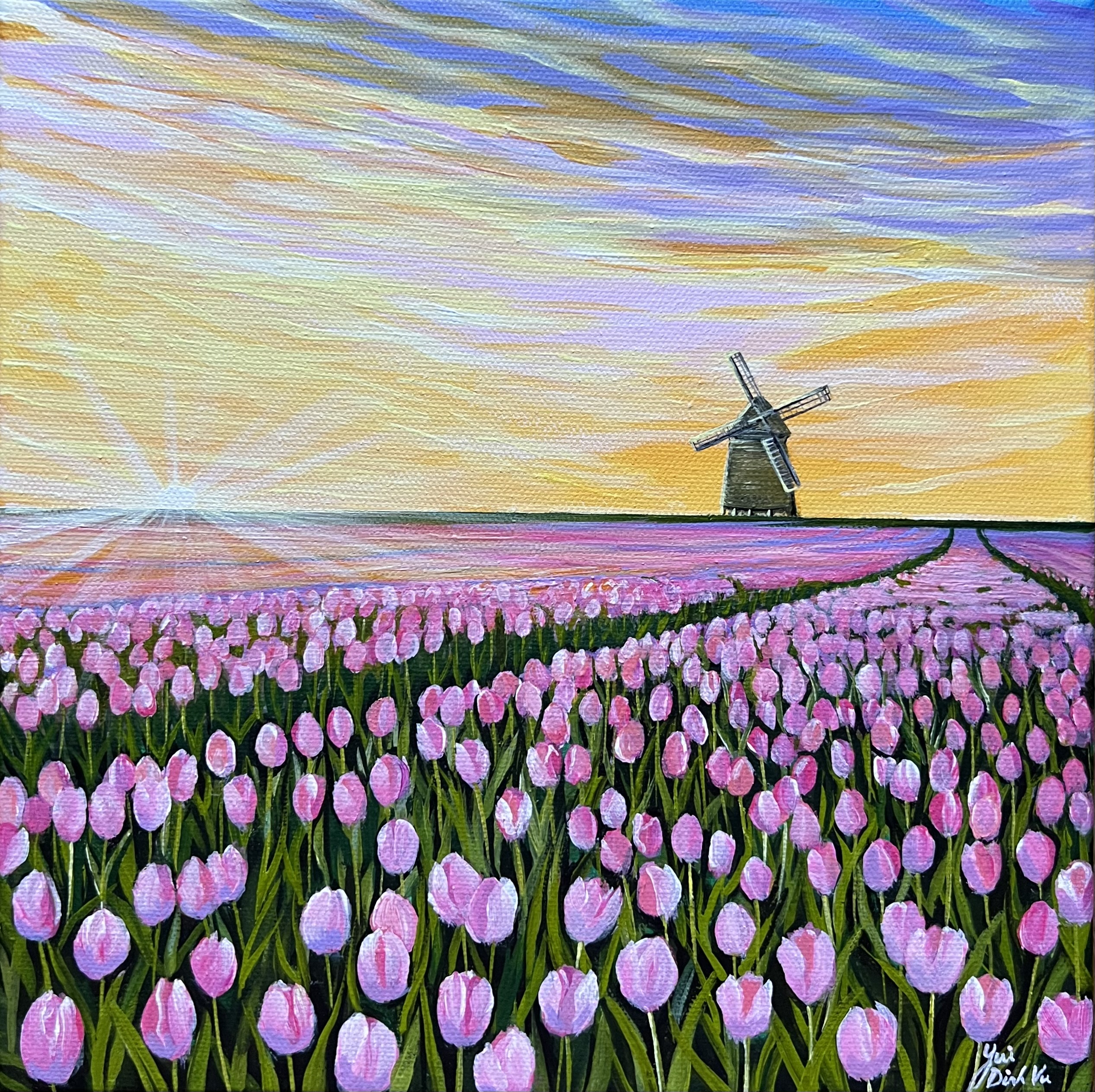 Tulip and dusk by Yui Dinh Vu – A contemporary landscape of tulip field at dusk.