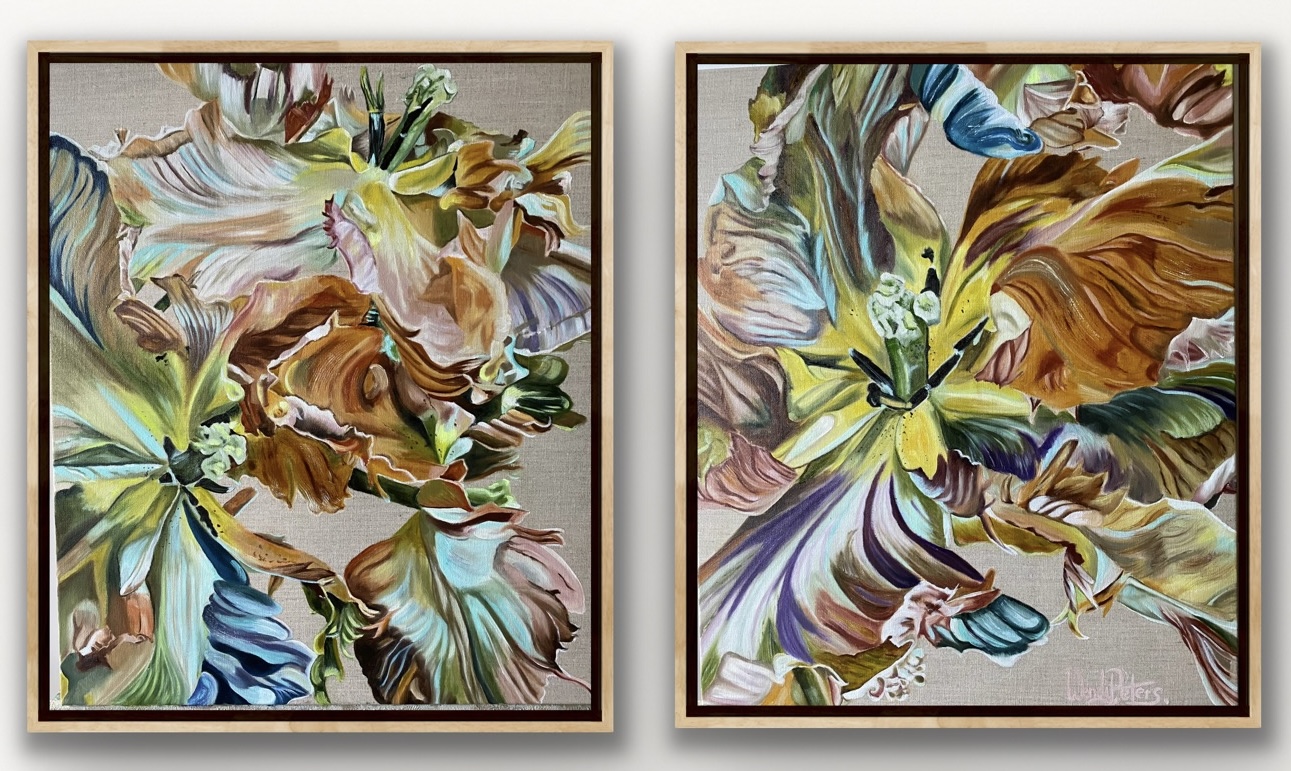 Tulip Transcendence – Diptych by Wendy Peters – original oil on linen canvas.