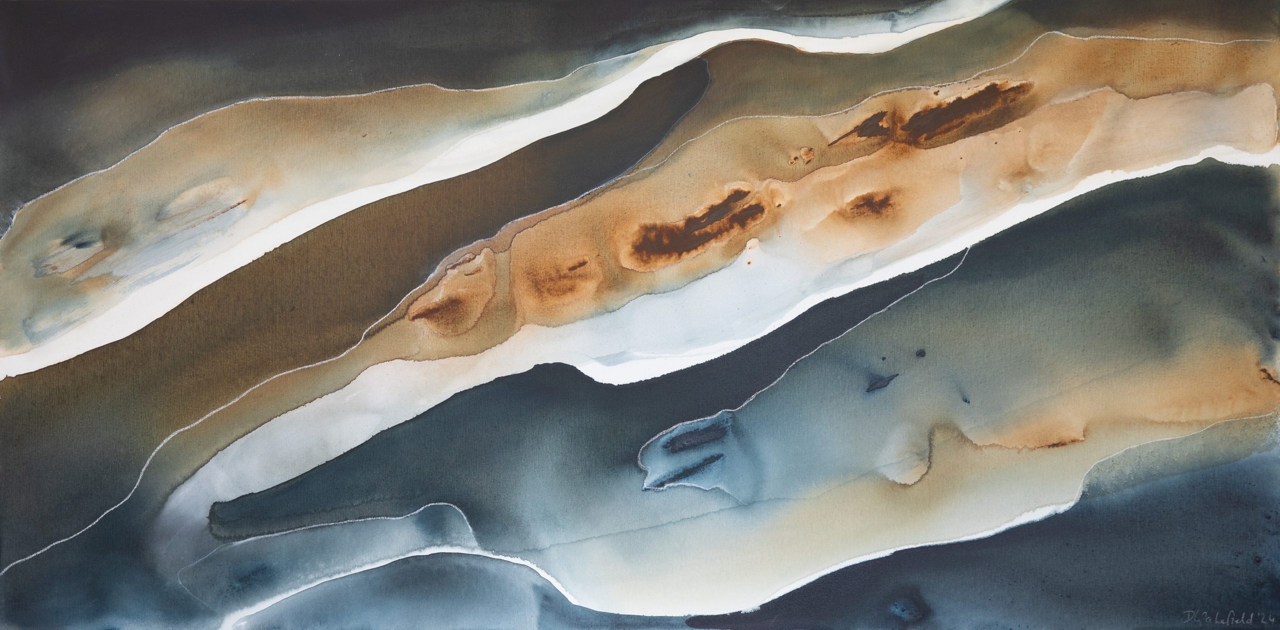 Tulsa by Dinah Wakefield is inspired by the light, the colours and the natural beauty of the Noosa region of Australia. “What I love most about Noosa is the interplay of light. From the oceans to the clouds, to the river estuaries and the hinterland, this canvas unfolds before me every day and finds expression in my paintings”.
