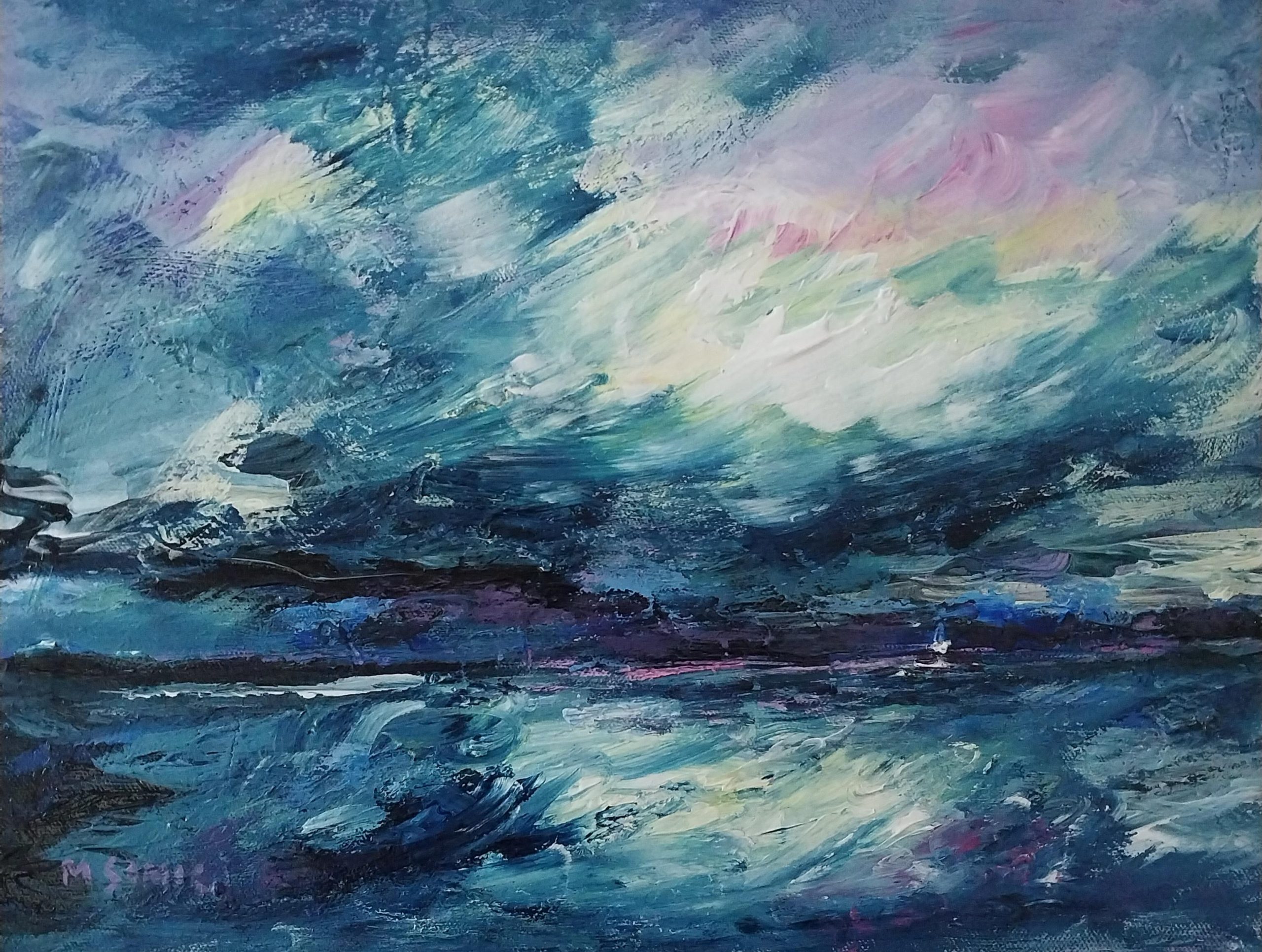My influence is the ocean that surrounds my island home, ever moving and life giving, the sea can be calm one day and turbulent the next. I’ve tried to capture the exciting and exhilarating moment in time of that turbulent but refreshing day.