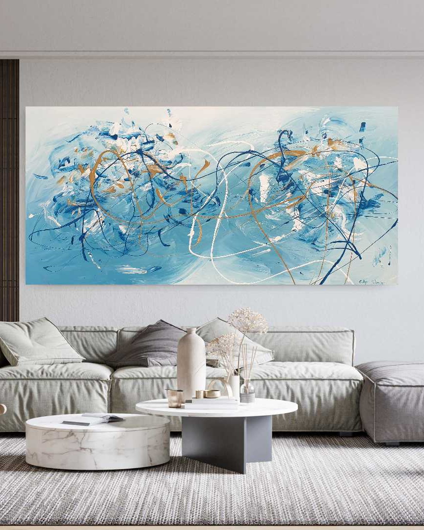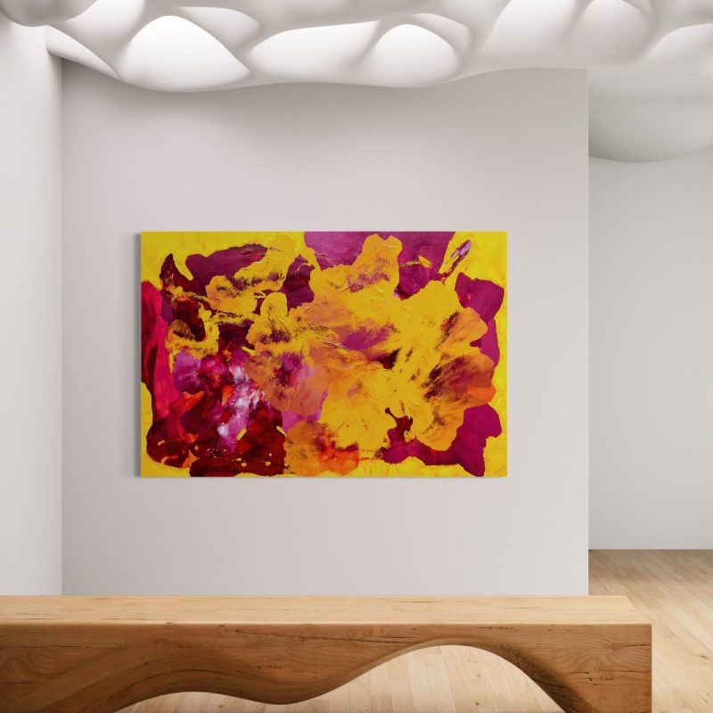 I view painting as sheer passion and feeling. Through my process I don’t seek to depict a set idea or subject, but instead I let scenes and dynamic movement emerge organically.