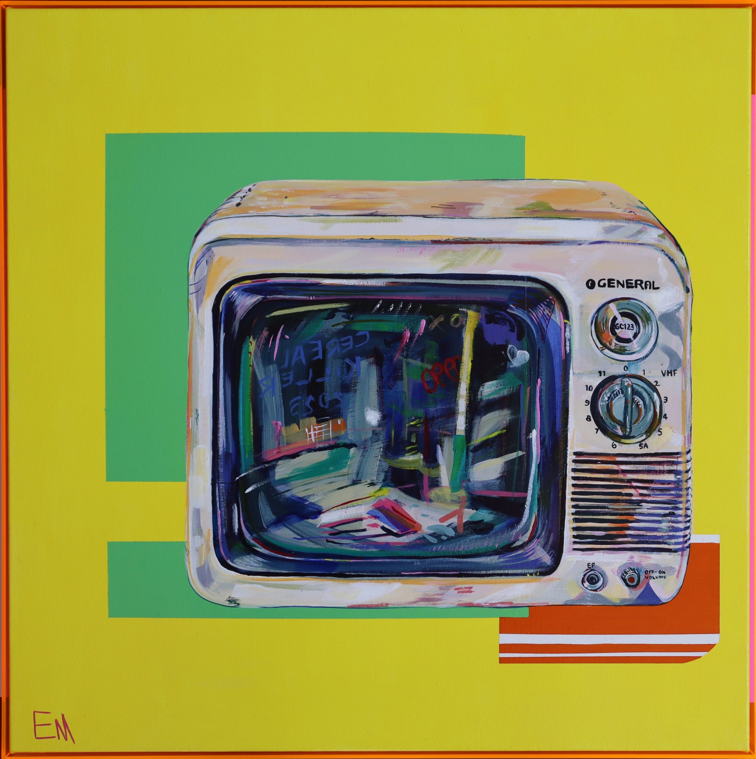 “TV WORLD” by Elisha Mcguckin – Â my daughter yelled out when I said I needed to name this painting.