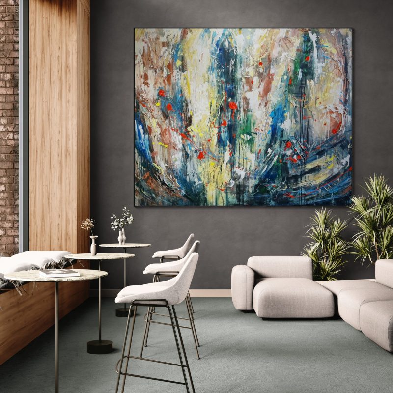 This painting requires framing behind glass