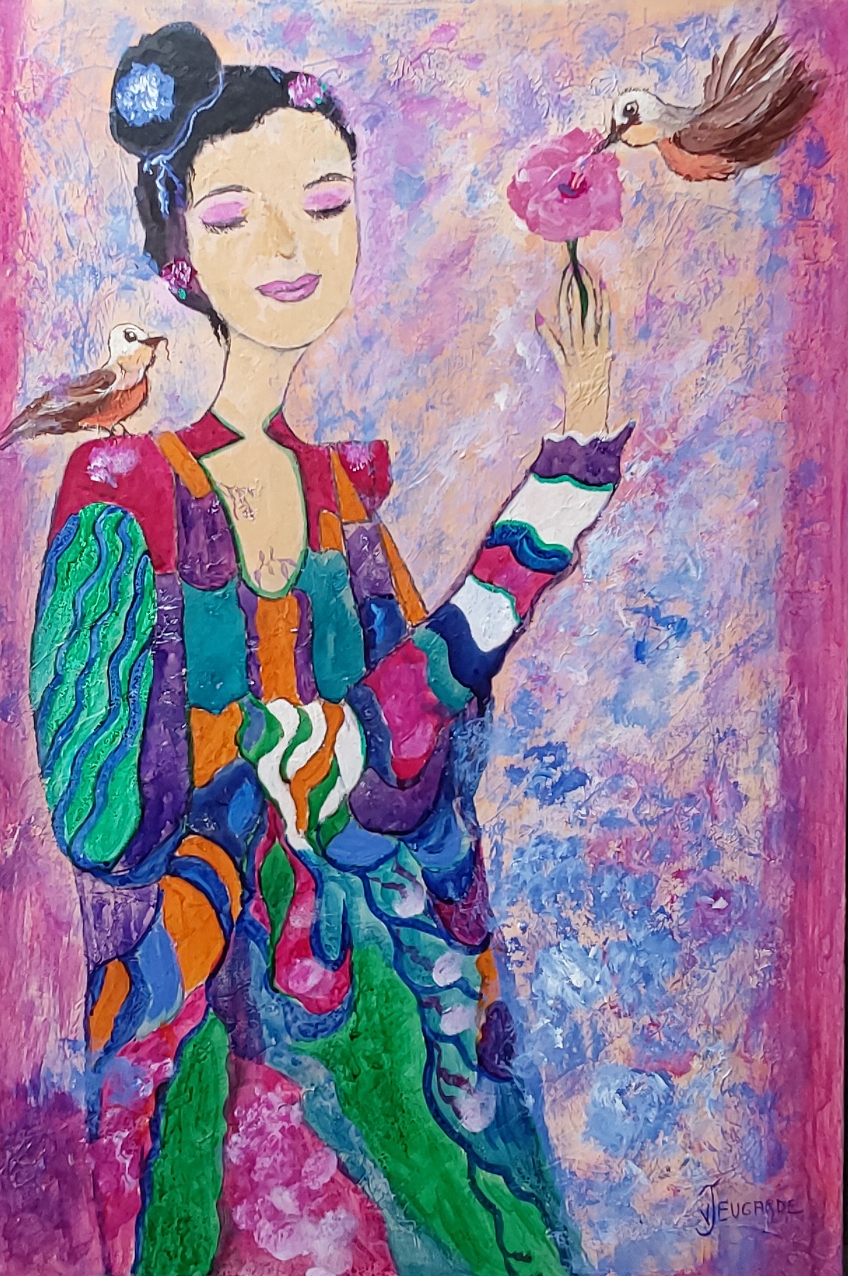 This is another of my series of women in nature, loving their Feathered friends and listening to the bird songs.