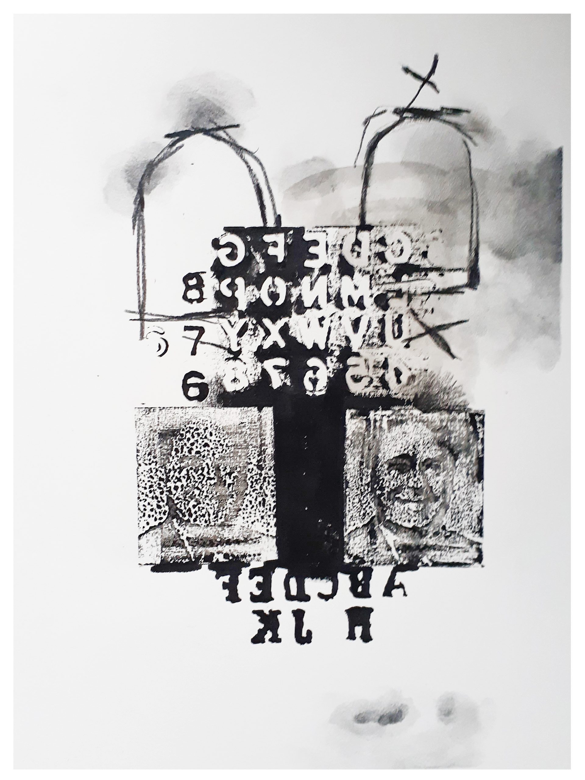 Two Sides by G Custom Kuhl is an original mixed media artwork on Lana paper measuring 30 cm X 42 cm. This work includes the use of pencils, inks, stencils, oil sticks and vintage printing plates that have been relief printed. Two sides relates to the two side of everyone’s brain action, right side and the left side, each reacting differently to certain situations and finding the common ground to find the action or solution forward.