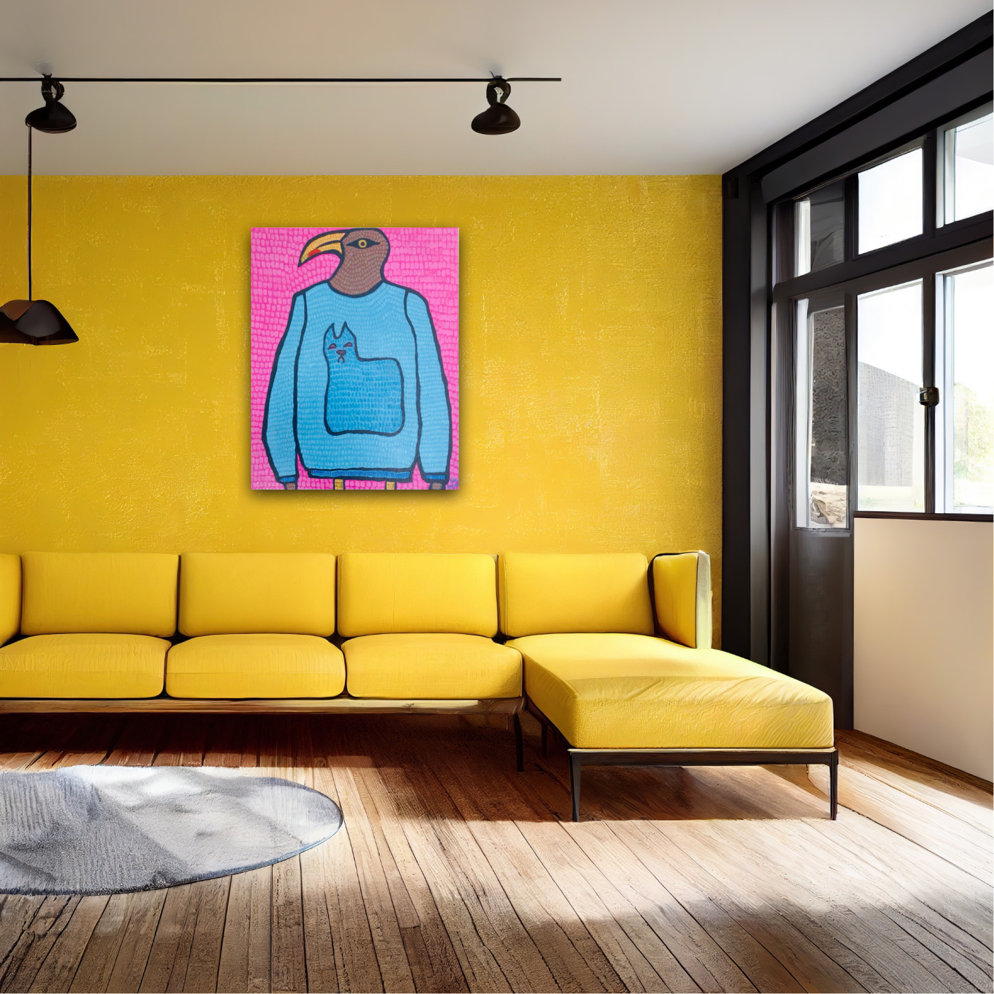 Funny Bird in Cat Jumper Acrylic Painting On Canvas