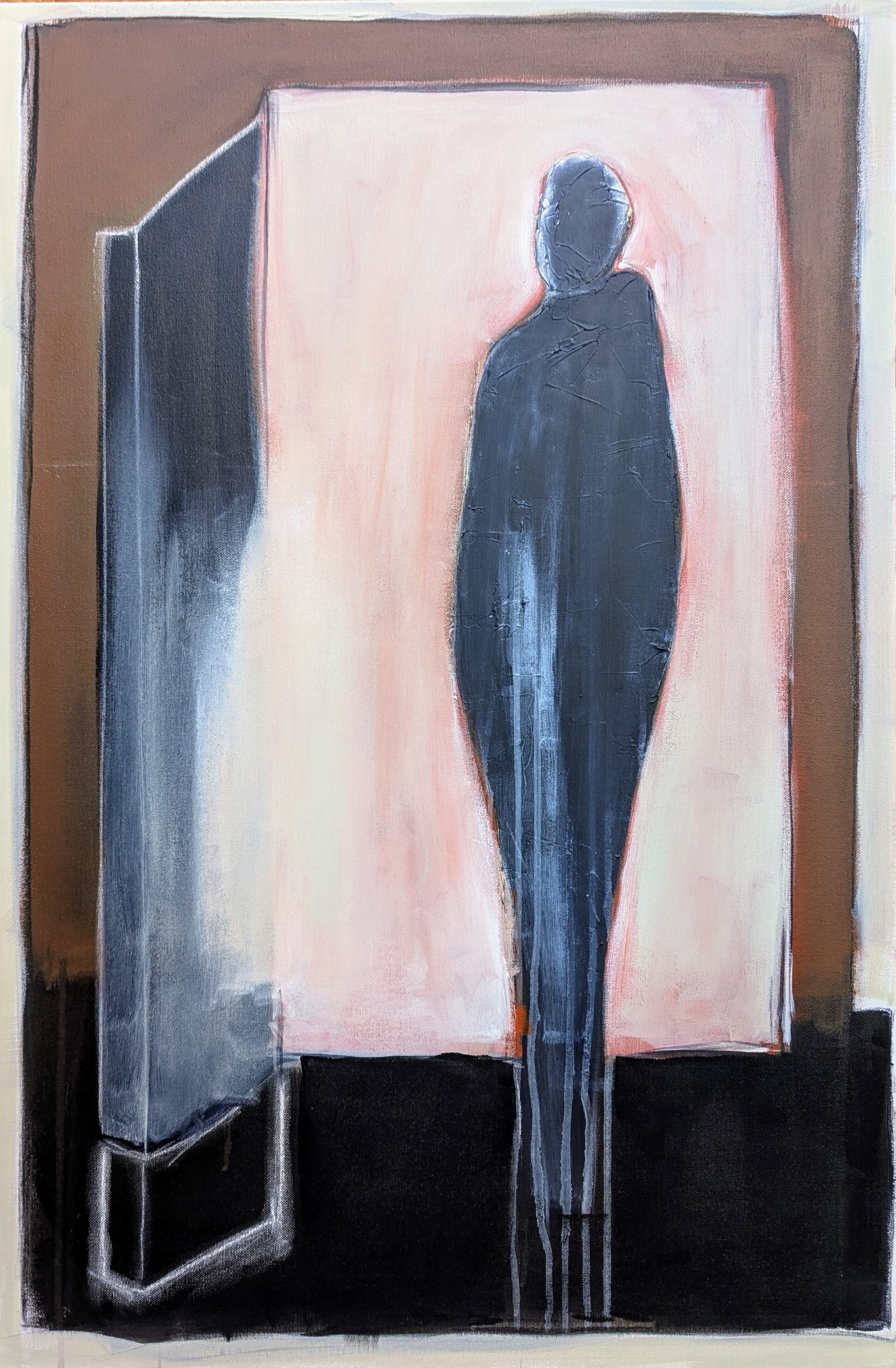 This painting represents the uncertainty of entering a new door or room, both in the real sense and metaphorically.