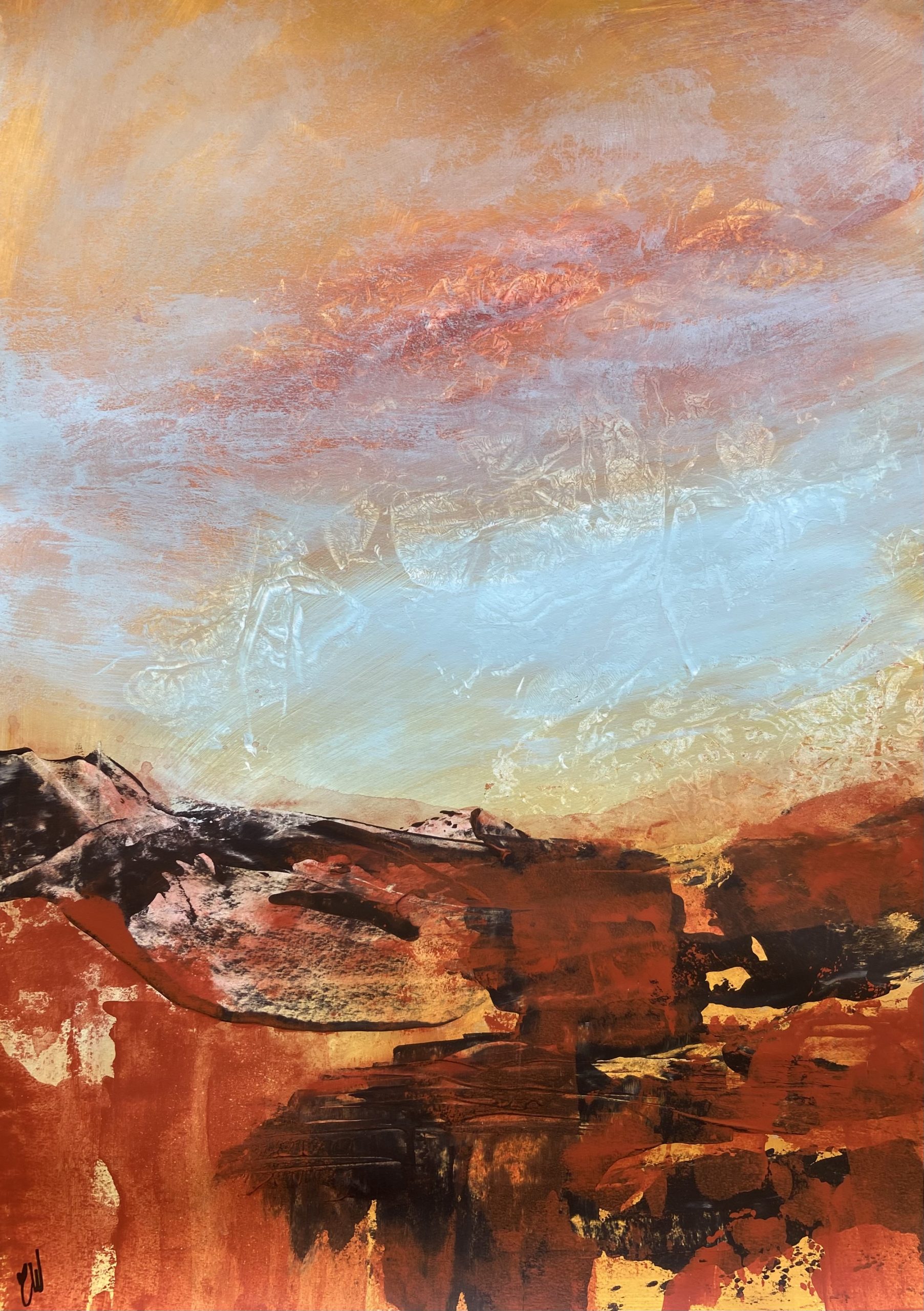 A beautiful abstract landscape painting. 59.4 x 42 cm (A2 size). Acrylic on paper. Frame not included. Requires framing.