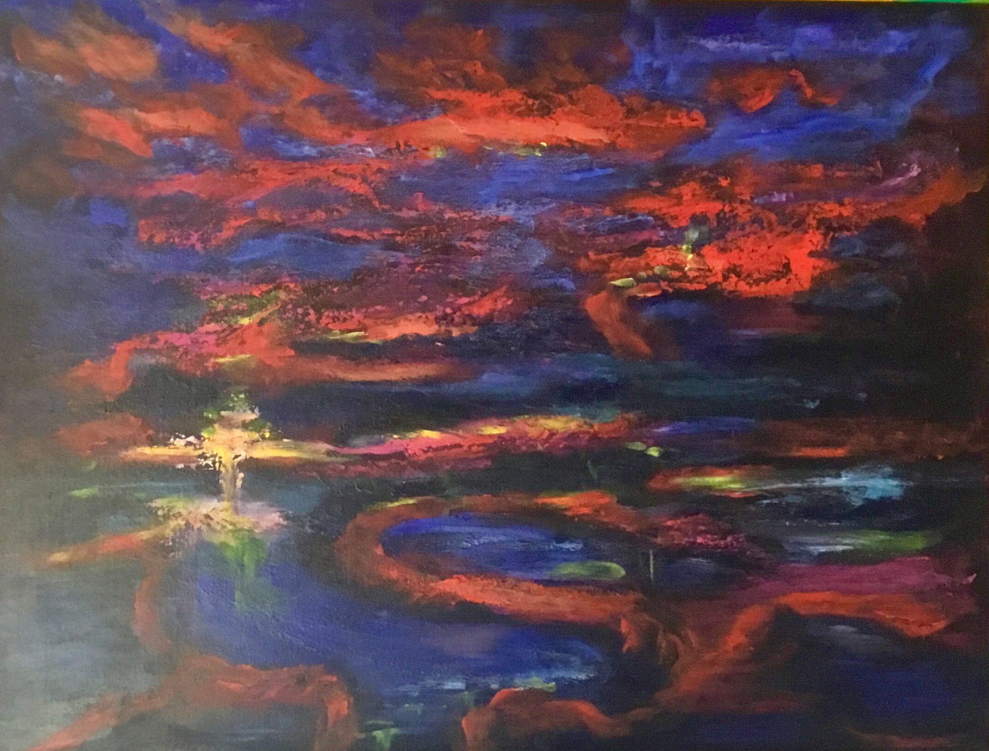 Under the Night Sky was inspired by the beautiful night sky on the Redlands Coast, the bay was lit in hues of magenta and orange from the glowing clouds of red and gold no doubt brought on by the steamy hot summers day.
