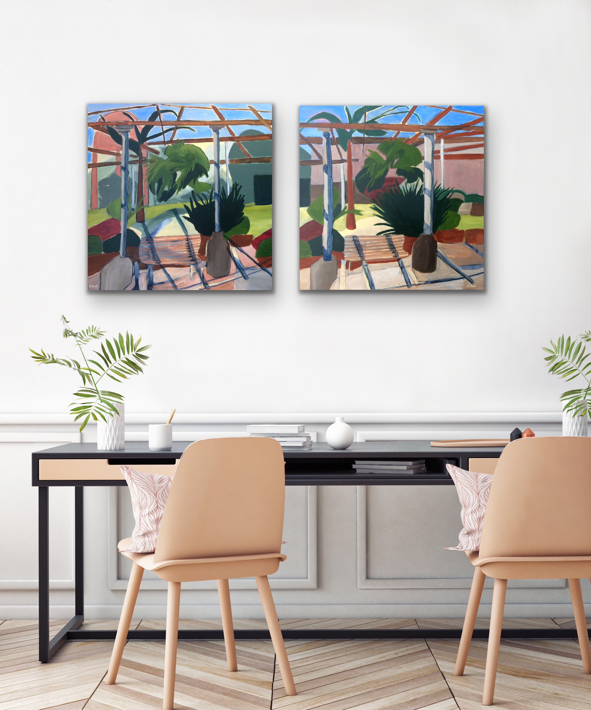 Hang together or hang apart – The works were painted as two separate pieces so they don’t match completely but go well together. I currently have them hanging together on my wall.